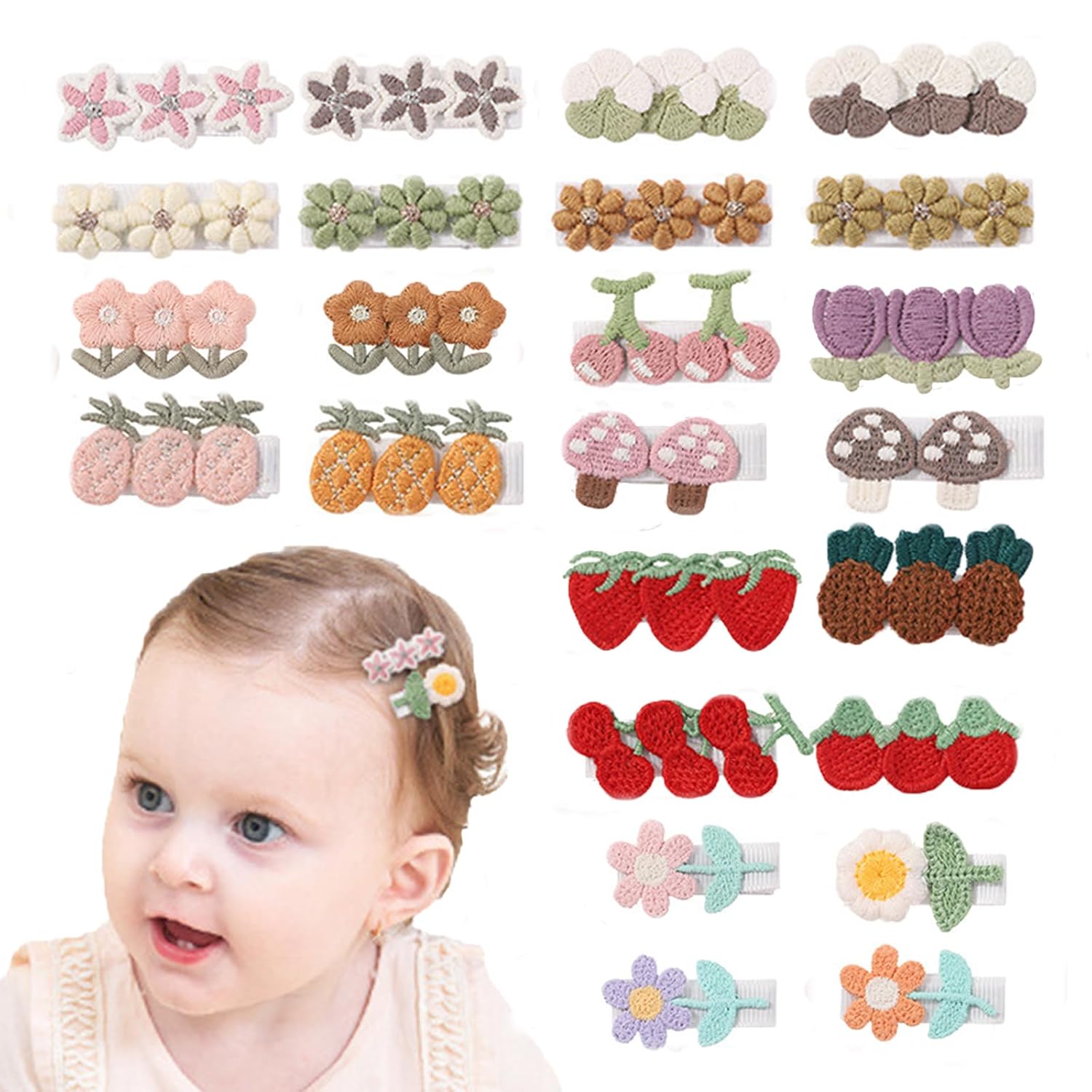 These adorable hair clips are designed with love, offering a perfect solution for styling your little oneâs hair. Featuring vibrant patterns like flowers and fruits, they add charm and playfulness to any babyâs look, making them ideal for special occasions or everyday wear.