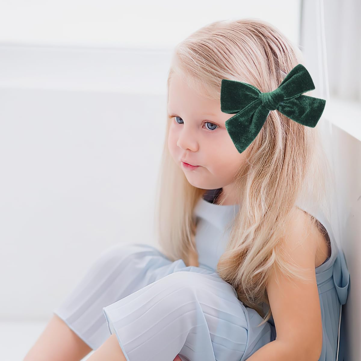 Available in a variety of classic colors, including the inviting green, these bows add a stylish accent to a range of hairstyles. From simple ponytails to braids, they offer endless styling options, making them ideal for birthdays, parties, and any other occasion where a little girl needs a sweet and functional accessory. Whether you're looking for a gift for a toddler or a charming addition to your child's wardrobe, these velvet hair bows are a delightful choice that never goes out of style.