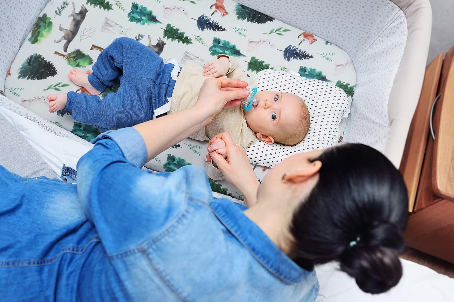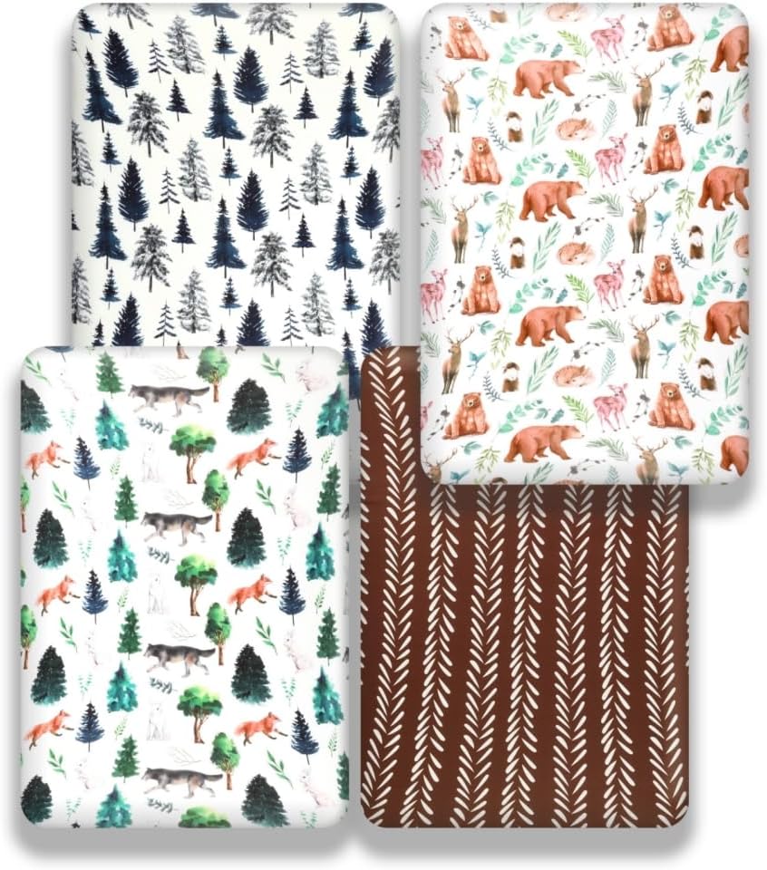 Introducing the 4-Pack N Play Sheets, designed to bring a touch of nature and charm to your baby's room. These fitted sheets are made from a super soft, elastic, and breathable fabric that ensures a comfortable and safe sleep experience for your little one. The woodland forest animal pattern adds a whimsical, natural vibe, transforming their nursery into a magical woodland retreat.