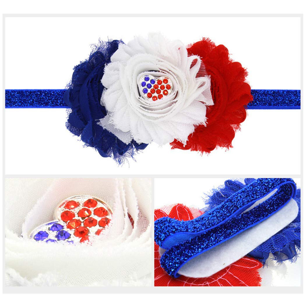 This 4th of July baby girl headband is the perfect way to add a patriotic twist to your little oneâs look. With its bright red, white, and blue color scheme, itâs designed to stand out at parties, baby showers, and any festive occasion. The soft, elastic fabric ensures a secure yet comfortable fit, while the delicate flower and flag prints bring a touch of charm and playfulness to your babyâs headwear.