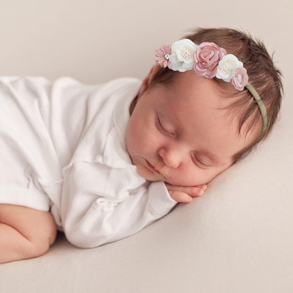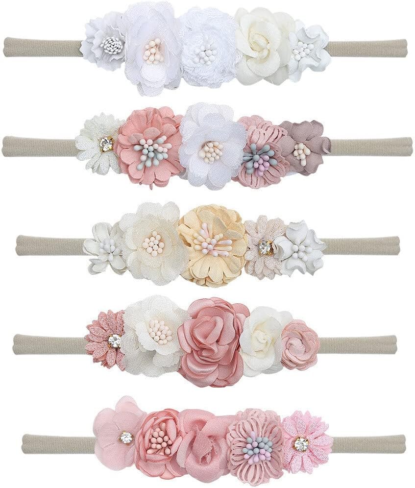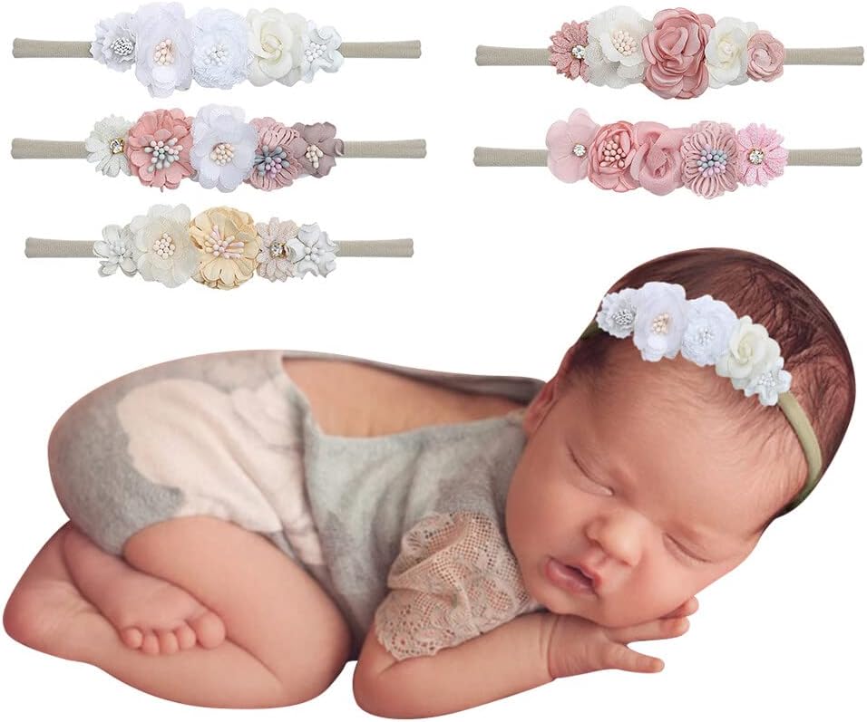 Add a touch of charm and elegance to your baby girlâs look with this stylish 5-piece baby headband set. Designed for all-day wear, these headbands combine softness and comfort with a delightful aesthetic that's perfect for every moment of your babyâs dayâwhether it's a casual outing, a family photo session, or a special celebration. Each headband is handcrafted with intricate floral patterns, making them a unique and versatile addition to your babyâs wardrobe. The soft and lightweight nylon material ensures a snug, gentle fit while being durable enough for daily use. With 5 different colors to choose from, these headbands are easy to match with any outfit or occasion, offering endless styling possibilities. This 5PCS baby headbands set is ideal for newborns, infants, toddlers, and older children, making it a unisex accessory that can grow with your little one. Perfect for baby gift parties, birthdays, or as a thoughtful gift for loved ones, these headbands are more than just an accessoryâthey're a way to create cherished memories and give your baby a stylish edge.5PCS Baby Headbands Set with Adorable Flower Designs