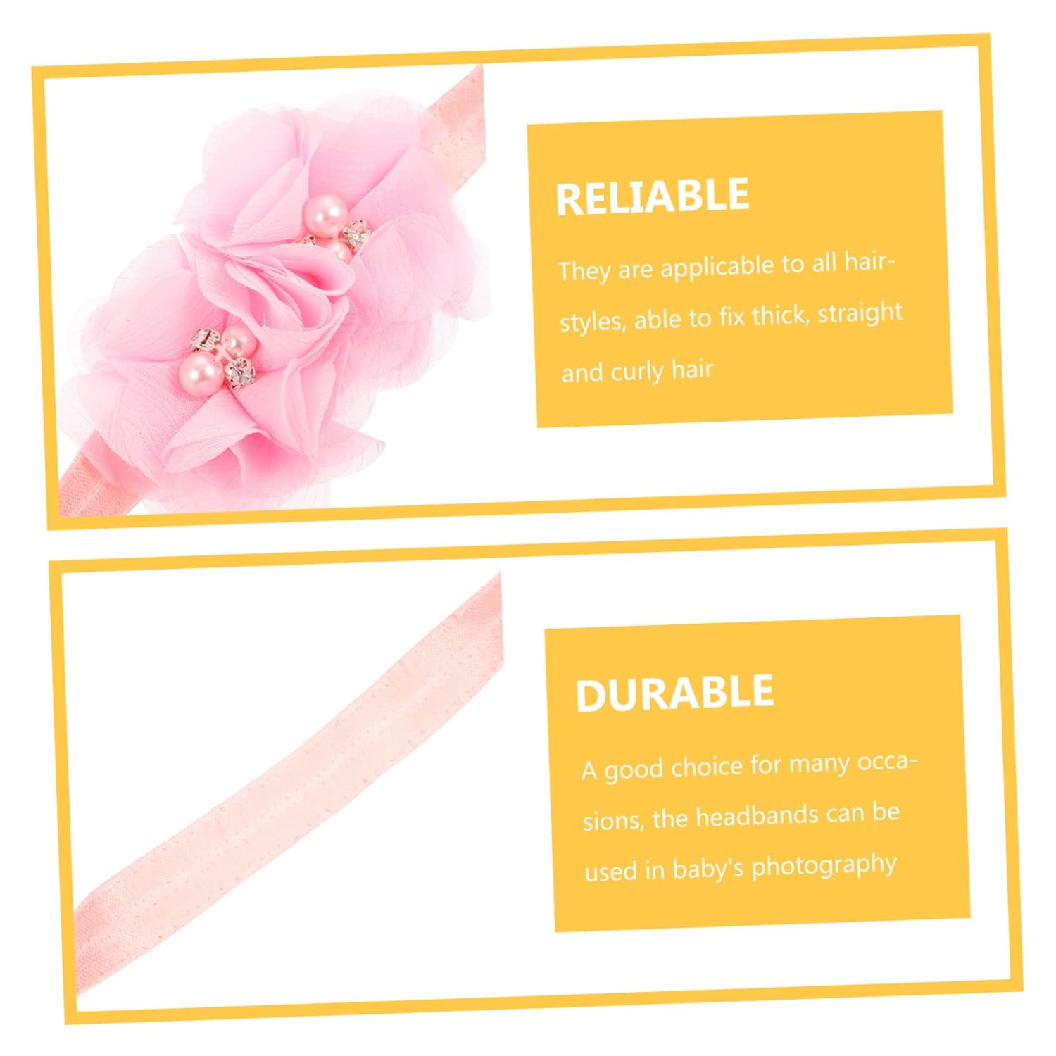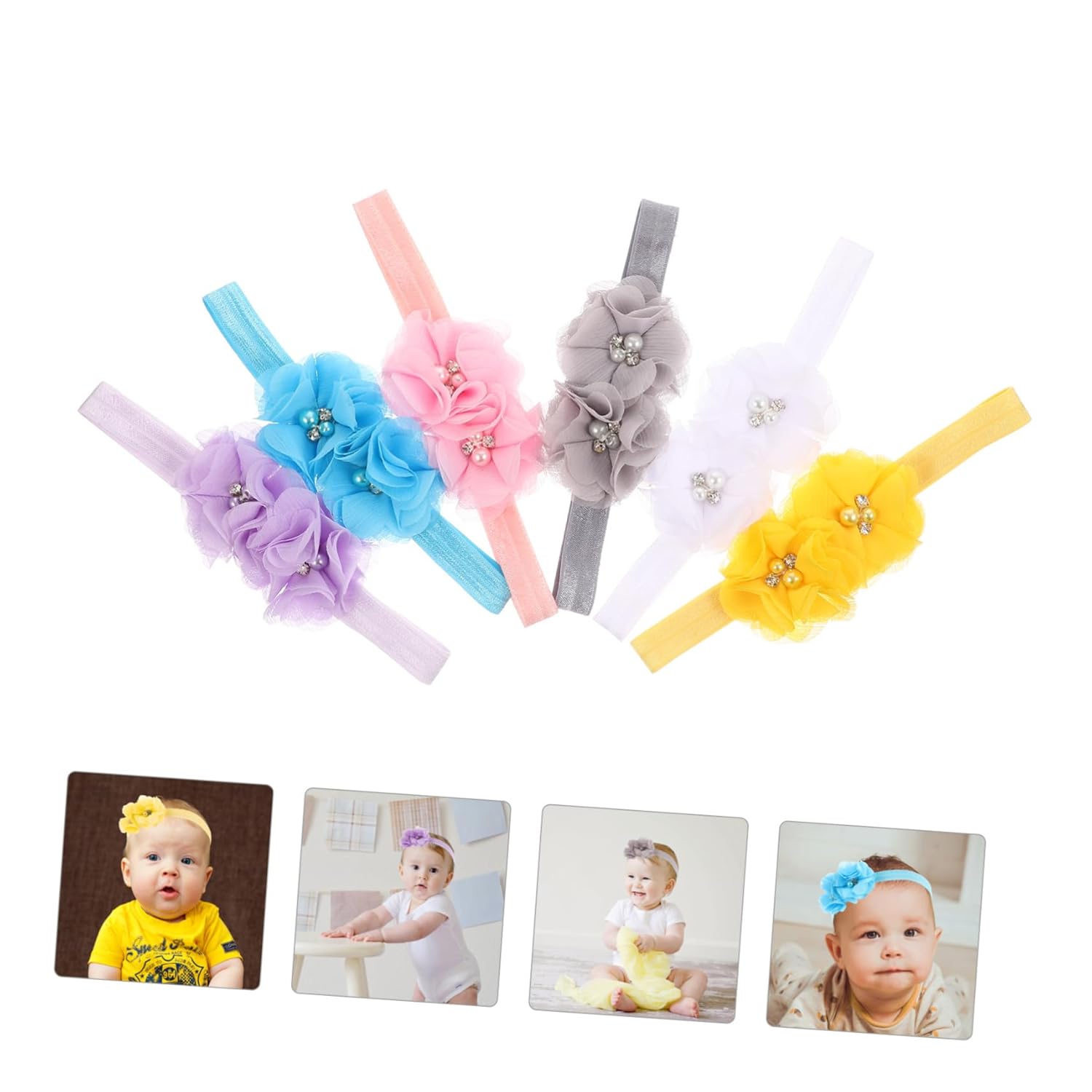 A set of 6 flexible elastic headbands with floral designs, perfect for daily wear and special events. Adjustable and comfortable, ideal for babies and toddlers of all hair types.