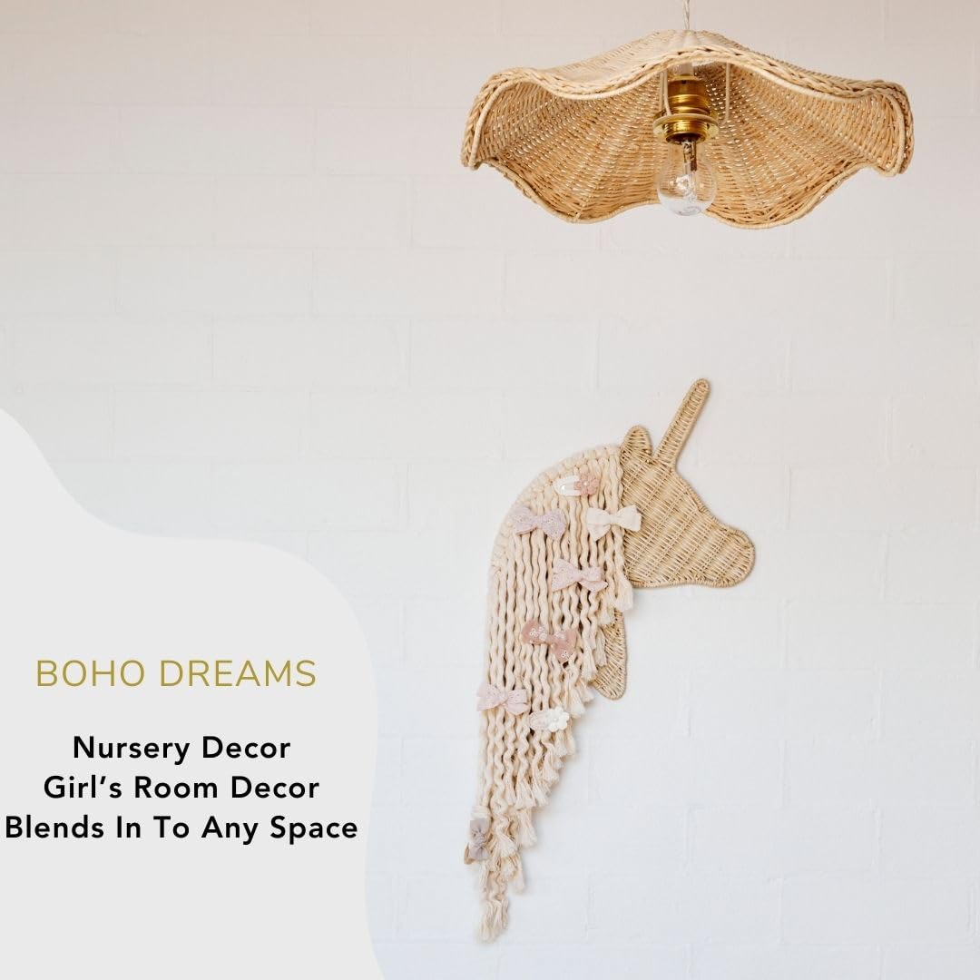Whether youâre a parent looking to enhance your childâs room or a gift-giver wanting to add a touch of magic, this Unicorn Boho Hair Bow Holder is a must-have. It's designed to help keep your little one's hair accessories in order while making every moment feel special and unique.