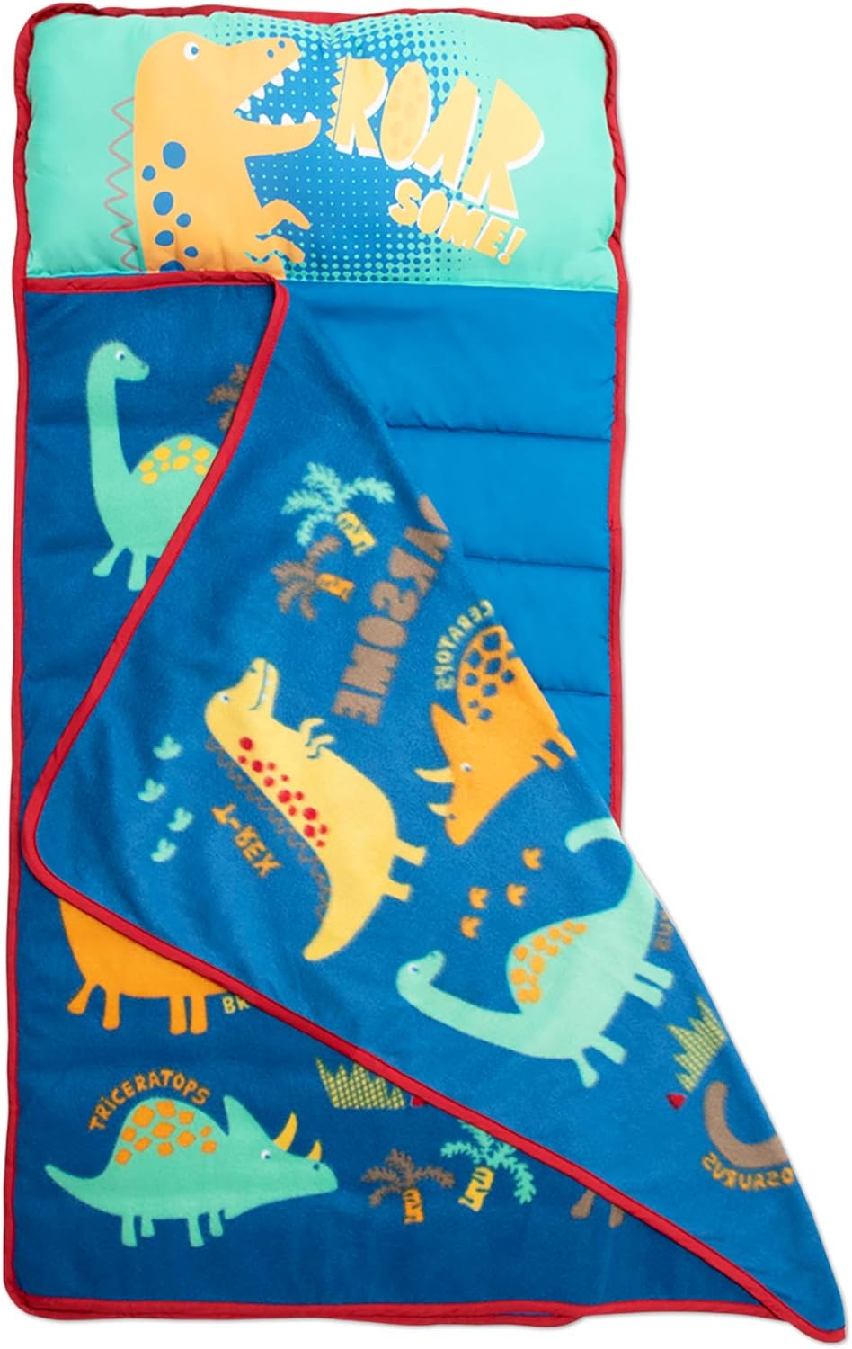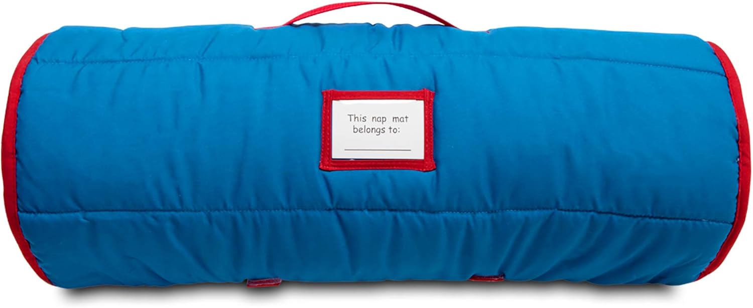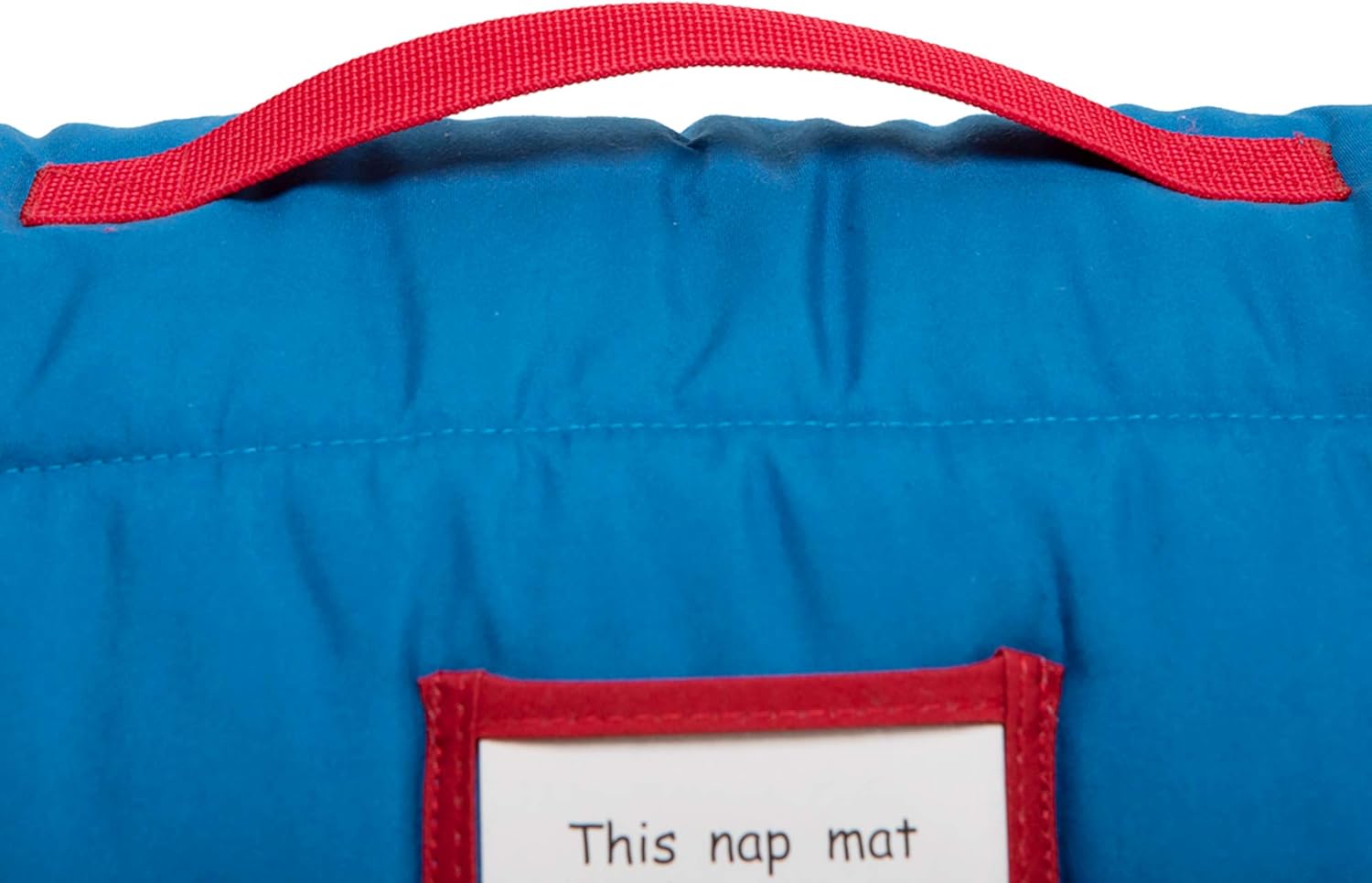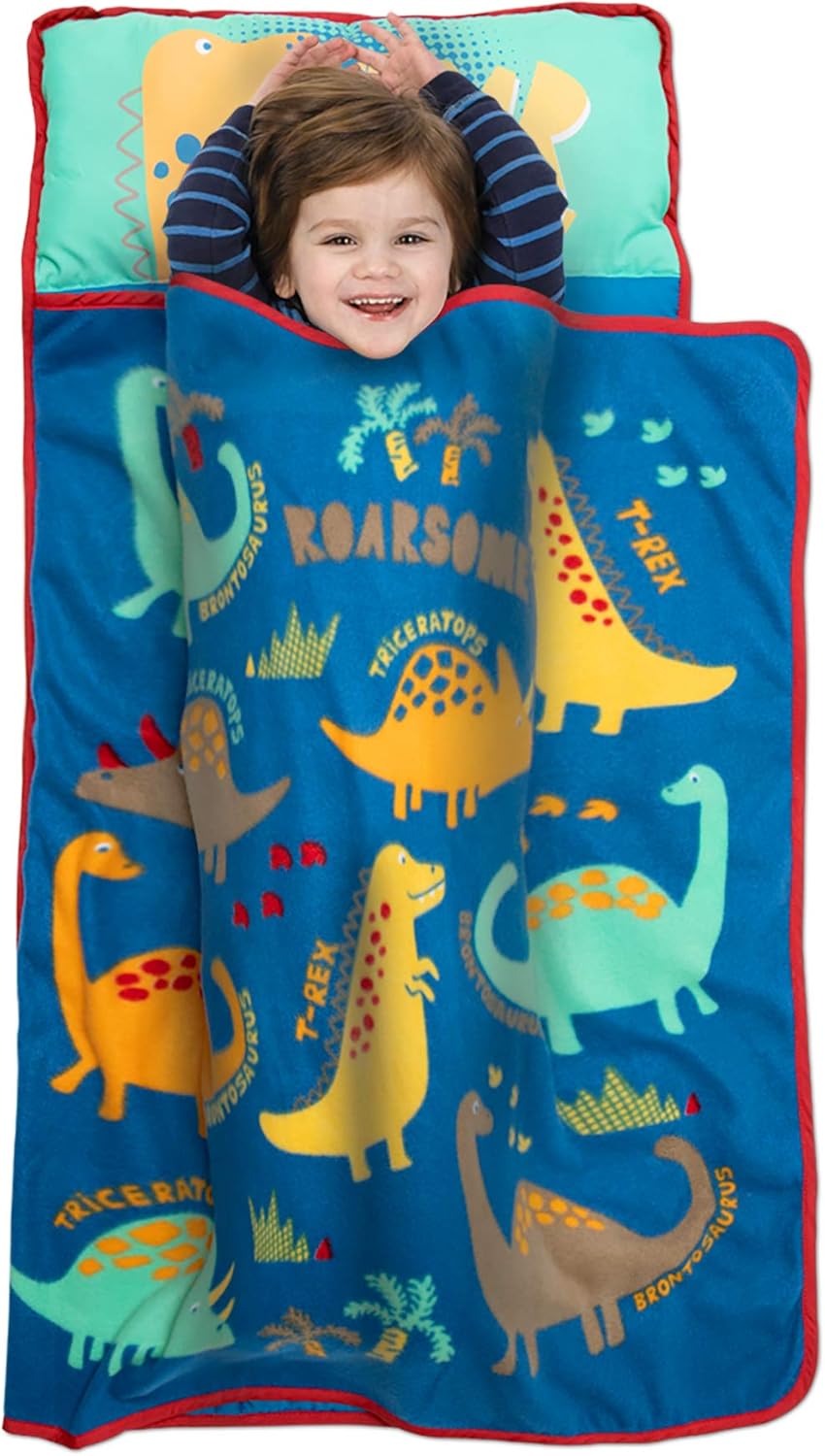 A stylish and functional nap mat set for toddlers, featuring a durable 100% polyester mat with a soft coral plush blanket and pillow. Includes personalized name tag and Velcro closure for easy carrying. Ideal for home, travel, and daycare use.