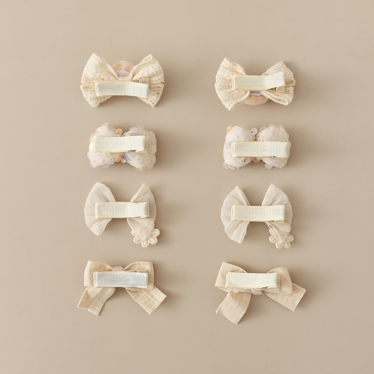 These 8-piece baby girls hair clip set is thoughtfully designed for comfort and safety. The fully lined construction ensures that your little one's delicate hair remains undisturbed, preventing any pulling or damage. Made with soft, gentle materials, these clips are lightweight and offer a secure fit that keeps hair in place all day long.