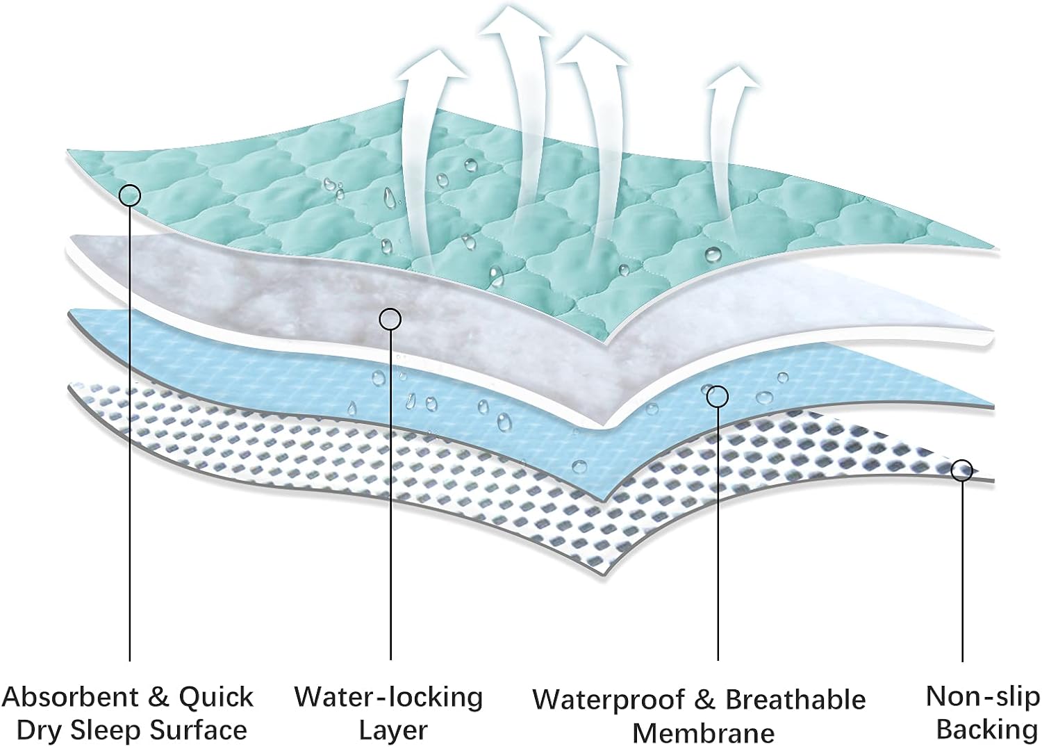 Biloban offers a premium waterproof crib mattress protector designed for absorbency, comfort, and durability. Perfect for nighttime, potty training, and daycare, it features a 4-layer construction with non-slip and soft quilted surfaces. Easy to clean and machine-washable, it ensures long-lasting use and protection for your babyâs bed.