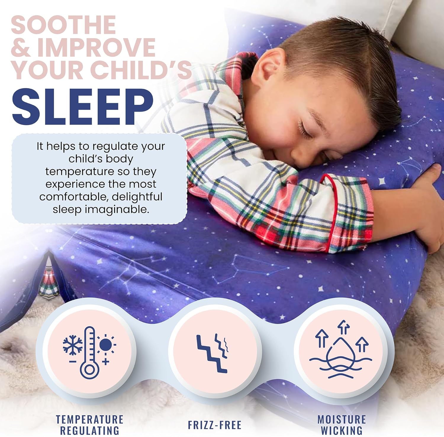 Designed with temperature-regulating properties, it ensures your little one stays cool and comfortable throughout the night, helping to reduce tossing and turning so they can enjoy a deep, restful sleep. This makes it an excellent choice for babies who are sensitive to heat or uncomfortable with traditional cotton pillowcases.