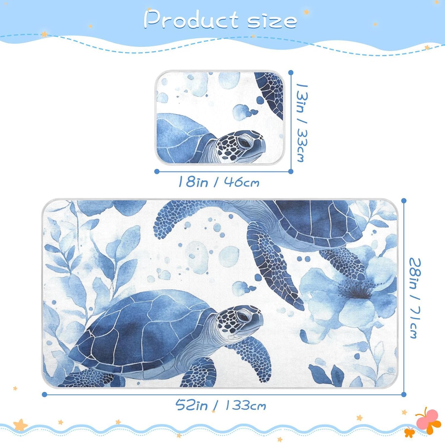 This Blue Flower crib mattress cover is more than just a protectorâit's your babyâs first line of defense against heat and spills. The breathable holes in the fabric ensure optimal air circulation, so your baby stays cool without feeling too cold. Its soft and hypoallergenic design is gentle on your little oneâs skin, making it ideal for sensitive babies.