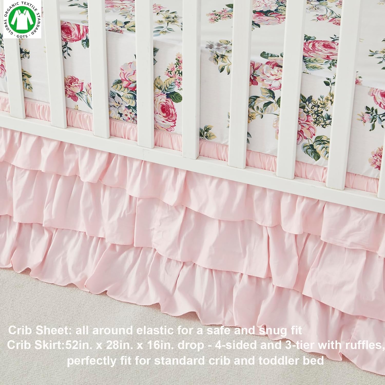 Brandreamâs 6-piece floral crib bedding set is the perfect blend of comfort and style for your baby's nursery. Crafted from 100% cotton, this set is gentle on your babyâs skin, breathable, and safe. OEKO-TEX certification ensures itâs free from harmful chemicals, making it ideal for sensitive little ones.