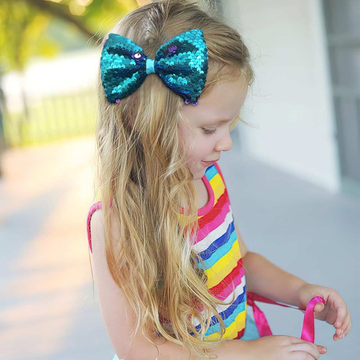 Whether your little one is dressed for a casual day out or a special event, these peacock sequin hair bows offer the perfect finishing touch. Adaptable to ponytails, buns, and braids, they are simple to style and perfect for creative looks.