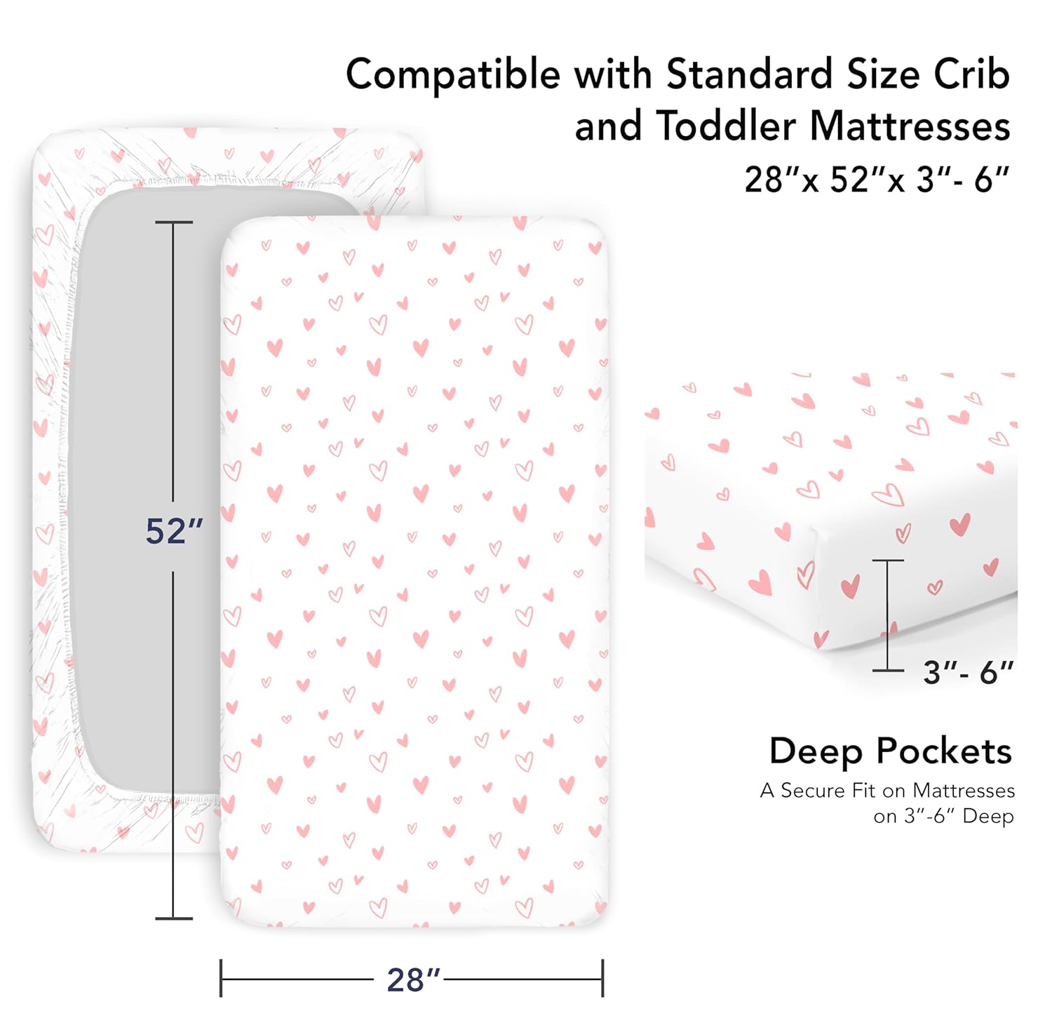 Choose the perfect combination of comfort, safety, and sustainability with Cambria Baby Organic Cotton Fitted Sheets. Made from 100% certified organic cotton, these sheets are gentle on your babyâs skin and free from harmful chemicals, ensuring a peaceful nightâs sleep from the first use. These fitted sheets are designed to fit standard crib and toddler mattresses, including sizes up to 28" x 52" and accommodate up to 6" thick mattresses. Pre-shrunk for a better fit and easy to care for with machine-washable fabric, they maintain their softness and shape even after repeated washings. When you choose Cambria Baby, youâre not just giving your little one a safe place to sleepâyouâre making a conscious decision for the environment. Our organic certification ensures that every product is ethically made and eco-friendly, offering peace of mind for parents who care about both their childâs well-being and the planet. Whether you're preparing for a new baby, upgrading your toddlerâs bedding, or searching for a reliable gift, these sheets provide the ideal solution. Their snug fit and breathable design make them perfect for sleep training, bedtime routines, and creating a welcoming atmosphere in your child's room. With Cambria Baby, you can enjoy restful nights for your baby while knowing that your choice is kind to both them and the Earth. Keywords: organic cotton fitted sheets, crib sheets for toddlers, eco-friendly baby bedding, safe baby sleep products, certified organic crib sheetsCambria Baby Organic Cotton Fitted Sheets