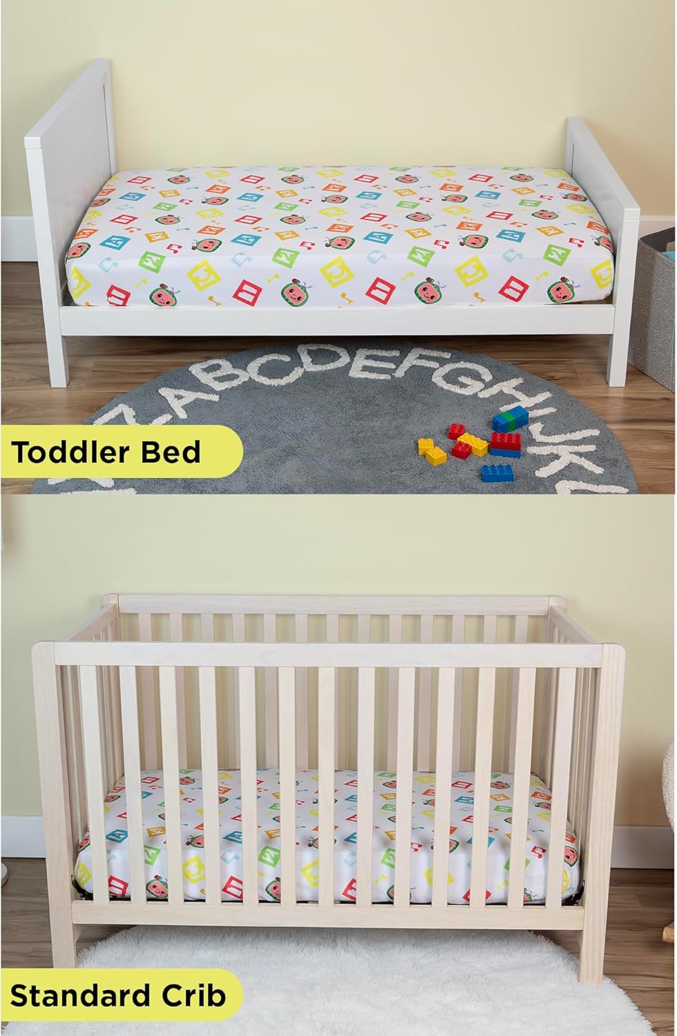 This 2-piece toddler bed sheet set brings a delightful blend of education and playtime to bedtime. Featuring the beloved characters from CoComelon, including JJ and his animal friends, it transforms your childâs sleep area into a fun and imaginative space every night.