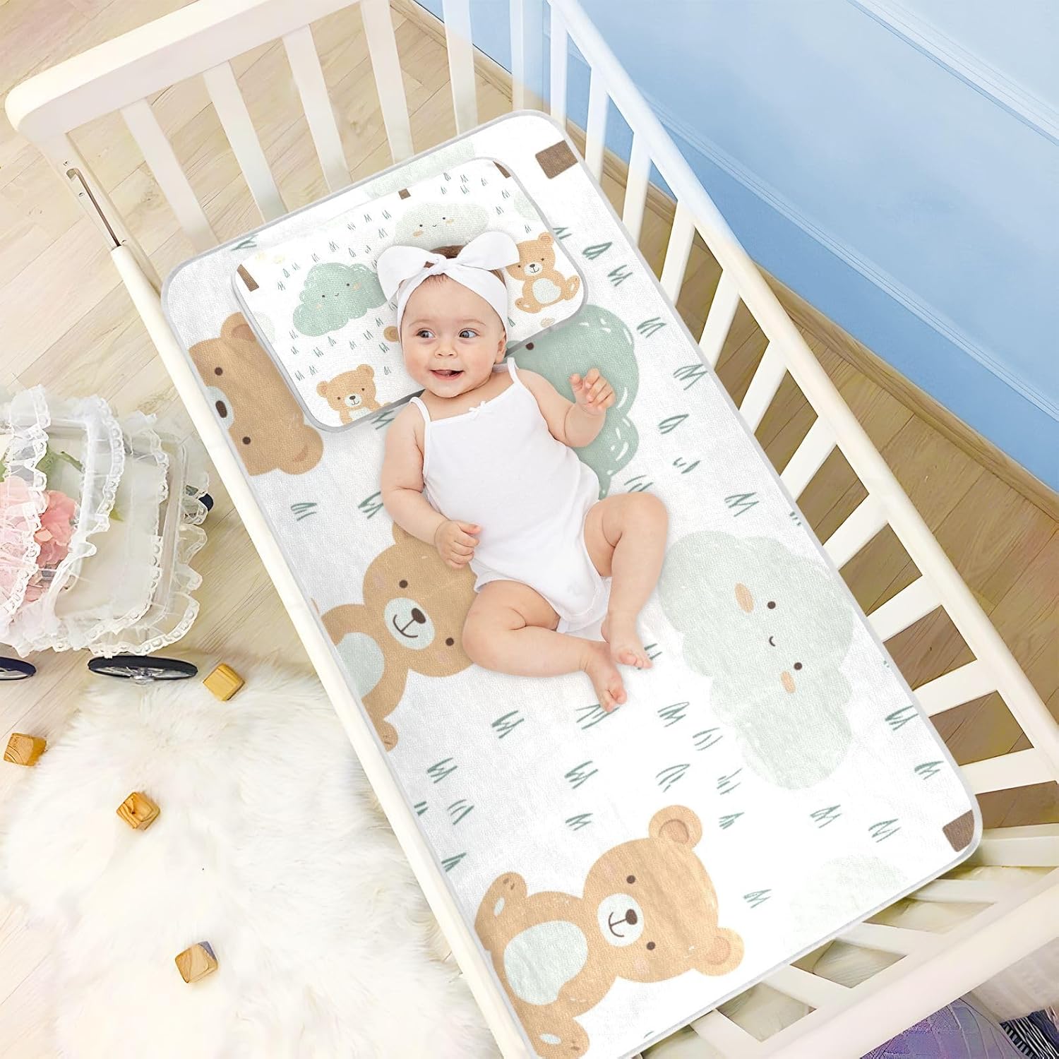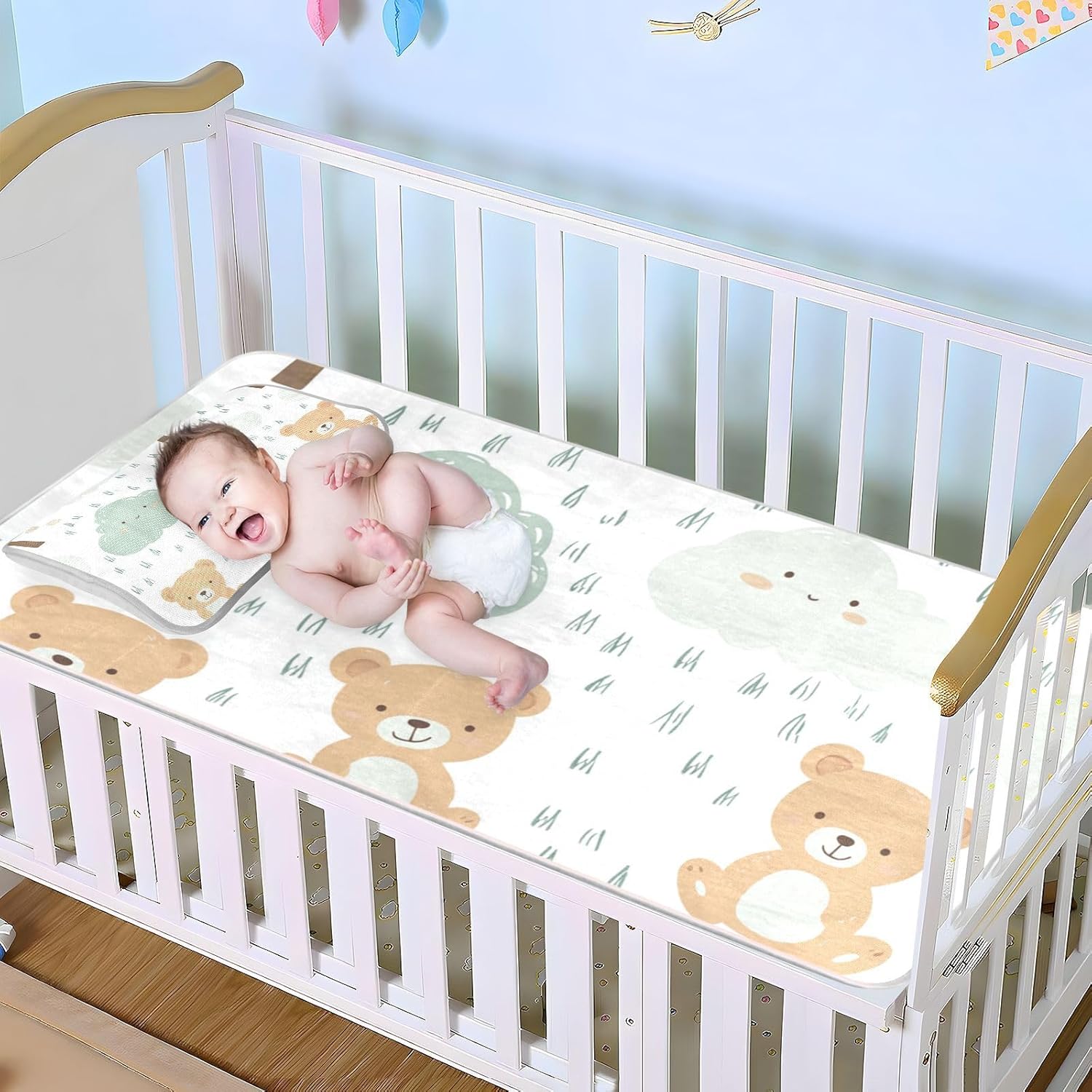 Keep your little one cool and comfortable all summer long with this innovative crib mattress pad. Made from advanced ice silk fabric with breathable holes, it helps regulate baby's body temperature during sleep. The thick mesh layer offers superior support and cushioning, ensuring a restful night's sleep. The waterproof design is perfect for protecting against spills and moisture, while the soft and skin-friendly knit fabric is gentle on delicate baby skin. The rounded edge design keeps the pad secure and prevents it from shifting, providing a safe and cozy sleep environment for your baby.