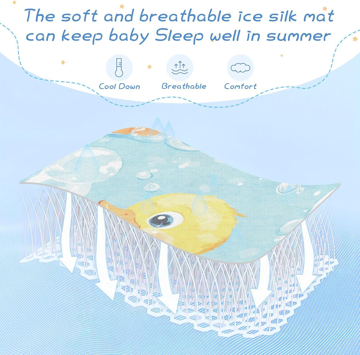 Keep your baby cool and comfortable all night with our premium cooling baby mattress pad. Engineered with advanced cooling technology, it helps regulate temperature and ensures a refreshing sleep environment, especially during the hottest summer nights. This breathable design promotes better rest and supports healthy sleep habits for your little one.