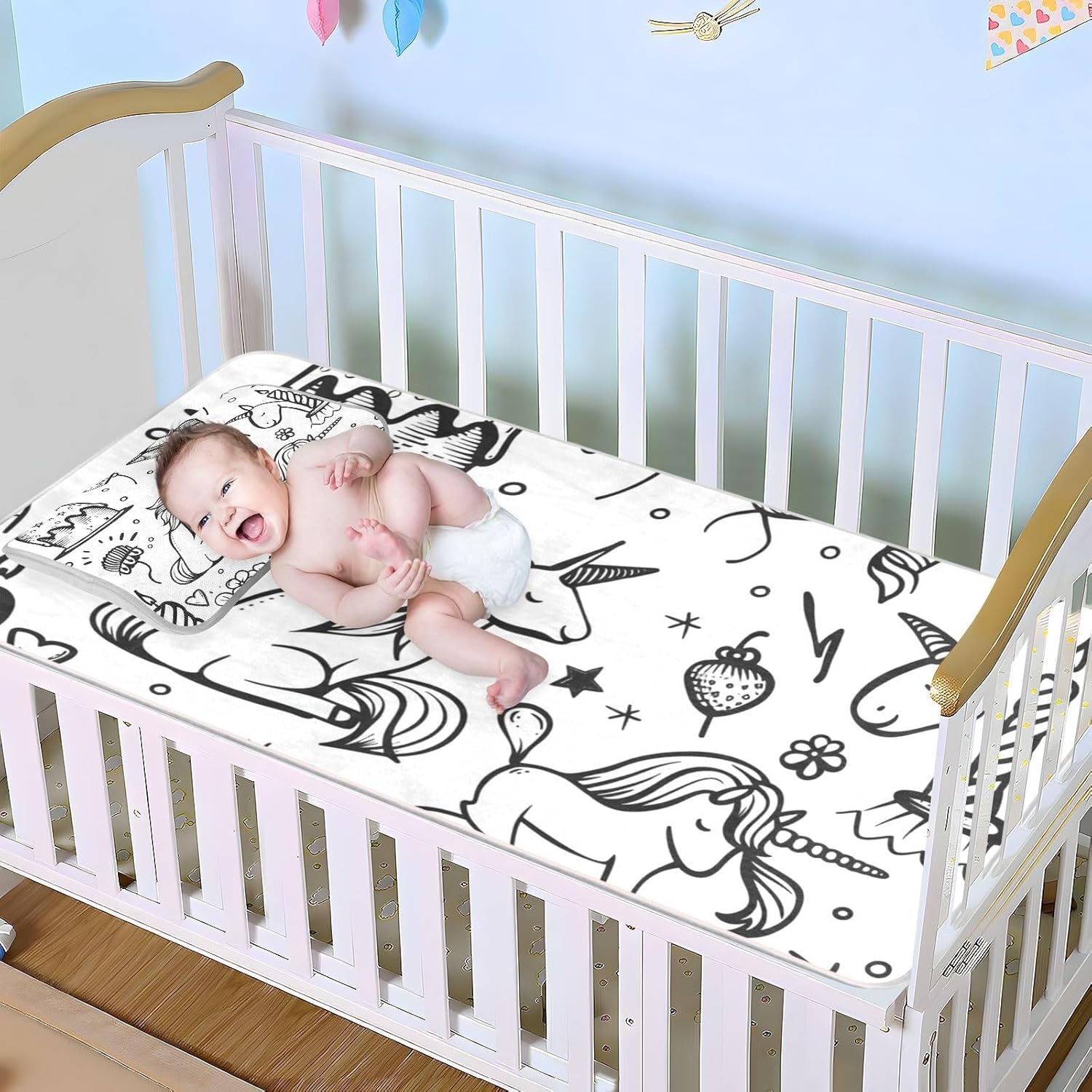 Ideal for year-round use, this adorable unicorn-themed protector combines functionality with a playful aesthetic. It not only keeps your baby's mattress protected from spills and messes but also adds a charming touch to your nursery decor. The waterproof and machine-washable construction makes it simple to maintain cleanliness, so you can focus on what matters mostâyour baby's comfort and safety.