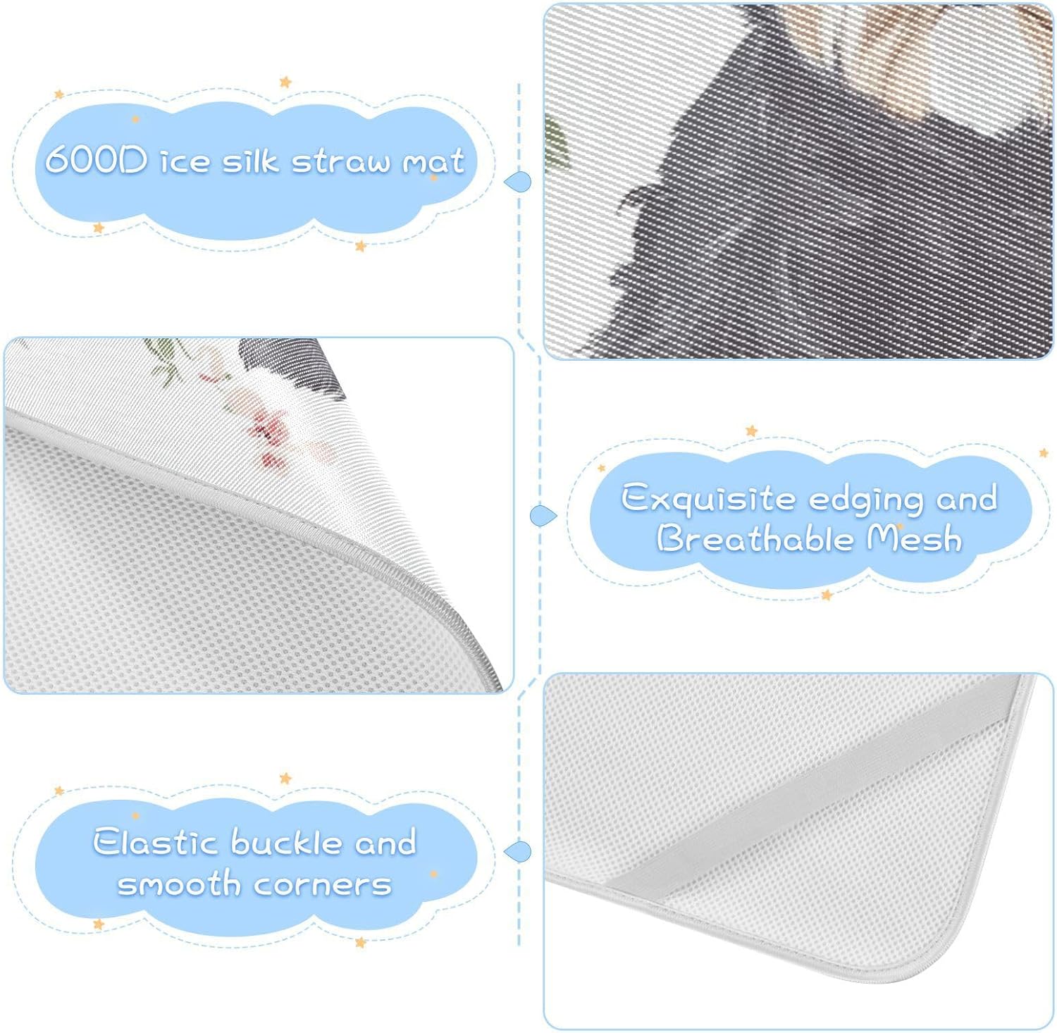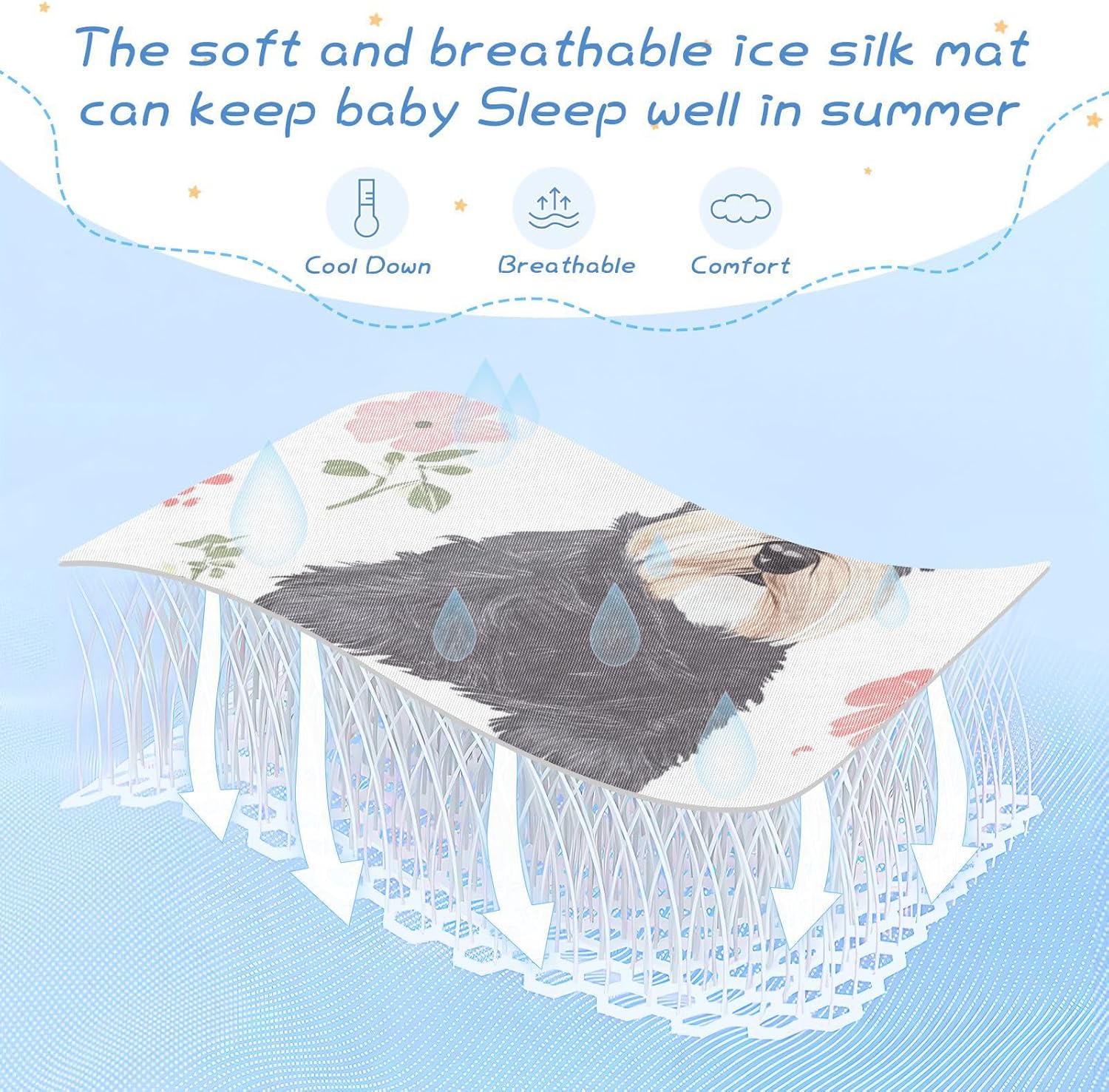 Designed to keep your baby cool and comfortable, this mattress pad features advanced ice silk fabric that offers a refreshing, cool sensation. Perfect for hot weather, it ensures your little one stays at a comfortable temperature all night long. The breathable holes and thick mesh layers work together to maintain a dry and airy sleep environment, even on the hottest summer nights.
