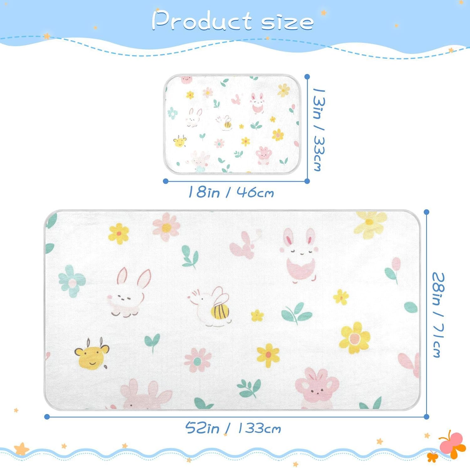 Not only is this mattress pad protector functional, but it also adds a touch of adorable style with its cute unicorn theme. Great for birthdays or baby showers, it combines comfort and charm to delight parents and children alike. The breathable and waterproof construction ensures your baby stays safe and dry, while the gentle cooling effect helps regulate body temperature during hot nights. Designed to fit standard baby and toddler mattresses, it's a versatile and reliable choice for any nursery.