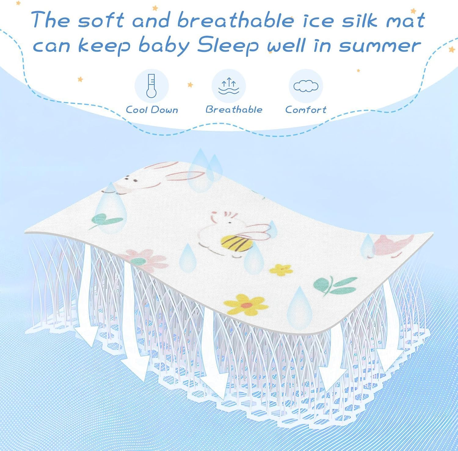 This cooling baby mattress pad protector is made from soft, skin-friendly ice silk fabric, ensuring your little one stays comfortable and refreshed during the warmest months. Its breathable mesh design promotes excellent airflow, creating a cooler and more restful sleep experience. Plus, it features a waterproof barrier that keeps spills and leaks at bay, making it easy to clean and perfect for everyday use. Ideal for cribs and toddler beds, this protector is a practical and essential addition to your babyâs sleep setup. Itâs also machine-washable, so you can maintain its quality without any hassle.