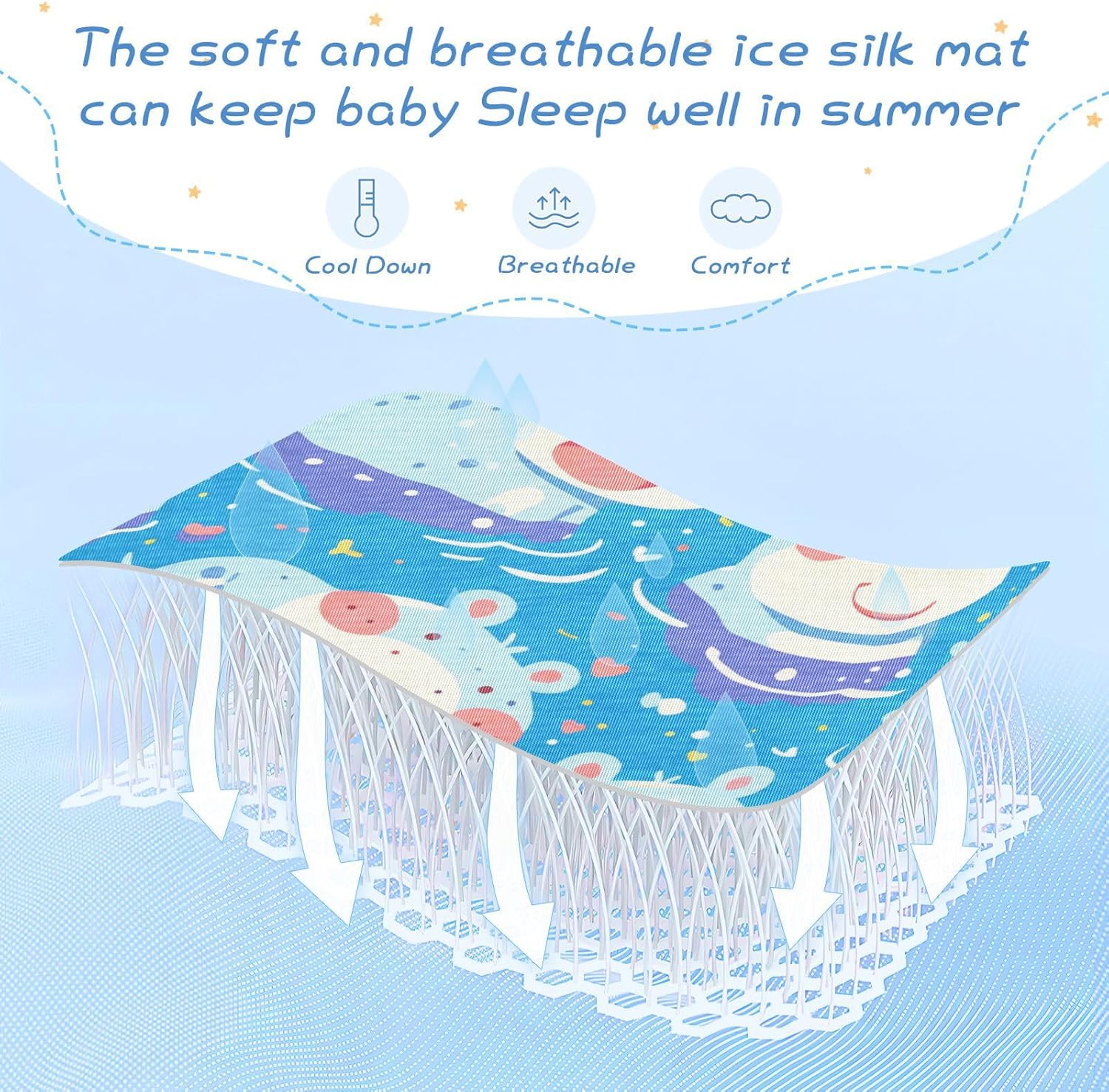 Give your baby the best sleep experience with this thoughtfully designed cooling mattress pad. Engineered with advanced cooling comfort technology, it helps maintain a refreshing and cool sleeping environment, even during the hottest summer nights. The soft and skin-friendly knit fabric ensures a gentle touch on your baby's delicate skin, while the waterproof construction offers reliable protection and easy cleaning through its convenient unzipping feature.