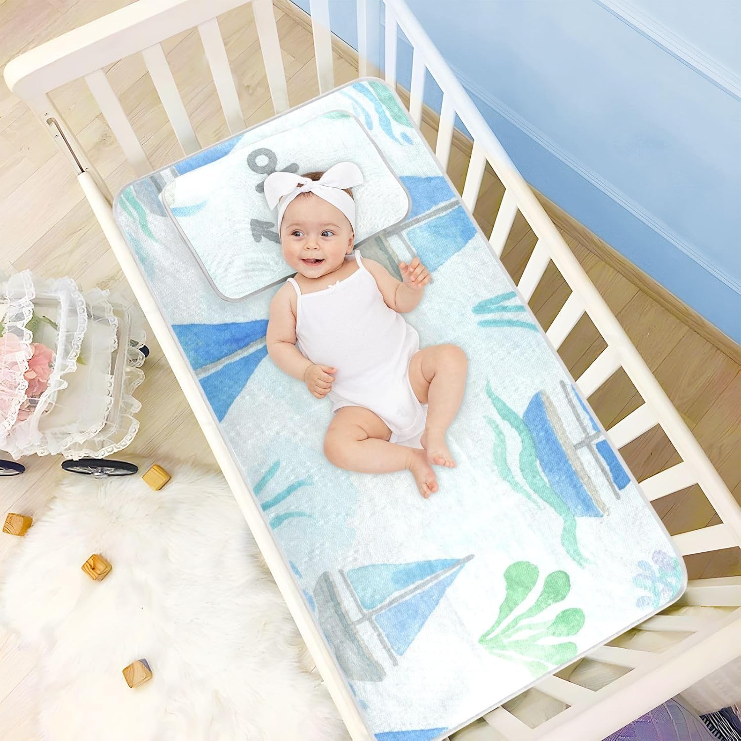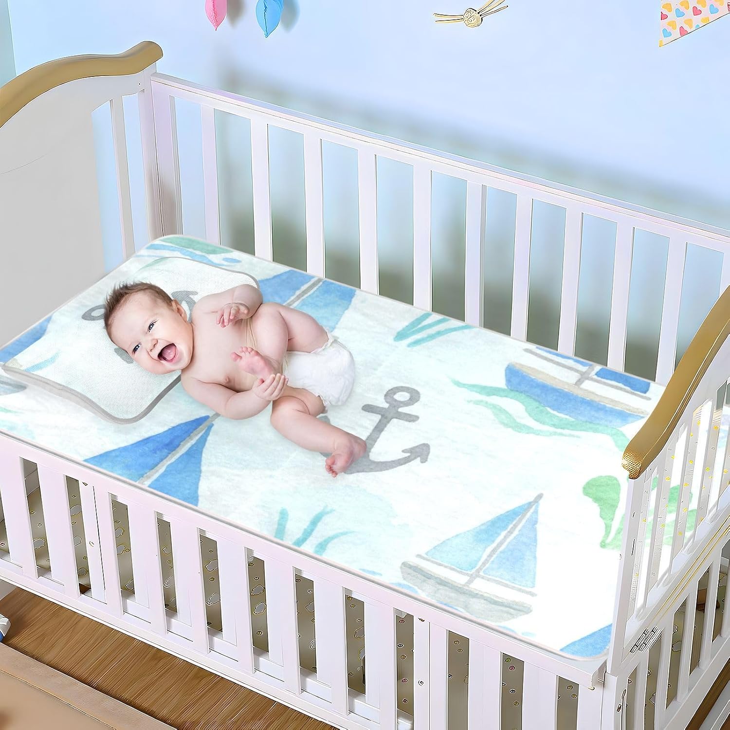 This cute cartoon-themed mattress pad adds both function and fun to your babyâs nursery. Featuring a playful sailing boat design, it serves as a delightful decorative element that brings a charming atmosphere to your childâs room. Suitable for use throughout the year, it offers a breathable and hygienic sleep surface. The machine-washable, hypoallergenic design makes cleaning a breeze, keeping your babyâs mattress fresh and clean with every use. Whether you're looking for a sleep-enhancing cover or a thoughtful gift for baby showers and birthdays, this pad is a great pick.