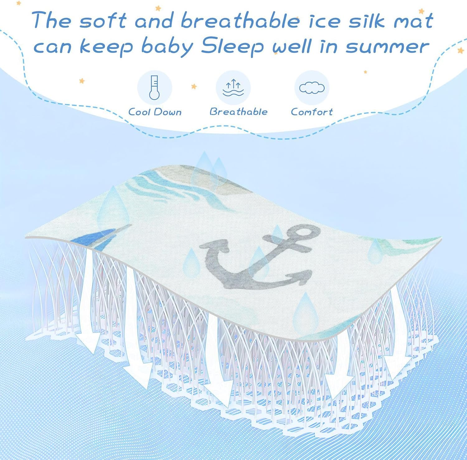 Keep your baby or toddler cool and comfortable all night long with this stylish crib mattress pad. Designed with advanced cooling technology, it helps regulate temperature and create a refreshing sleep experience, especially during the warmest months. The soft, skin-friendly knit fabric is perfect for sensitive skin, offering a safe and cozy feel that supports better sleep. This 28 x 52 inch size ensures a snug fit for standard crib mattresses, and the attached 13 x 18 inch pillowcase completes your babyâs bedding setup. A durable and breathable cover that enhances sleep comfort without sacrificing charm.