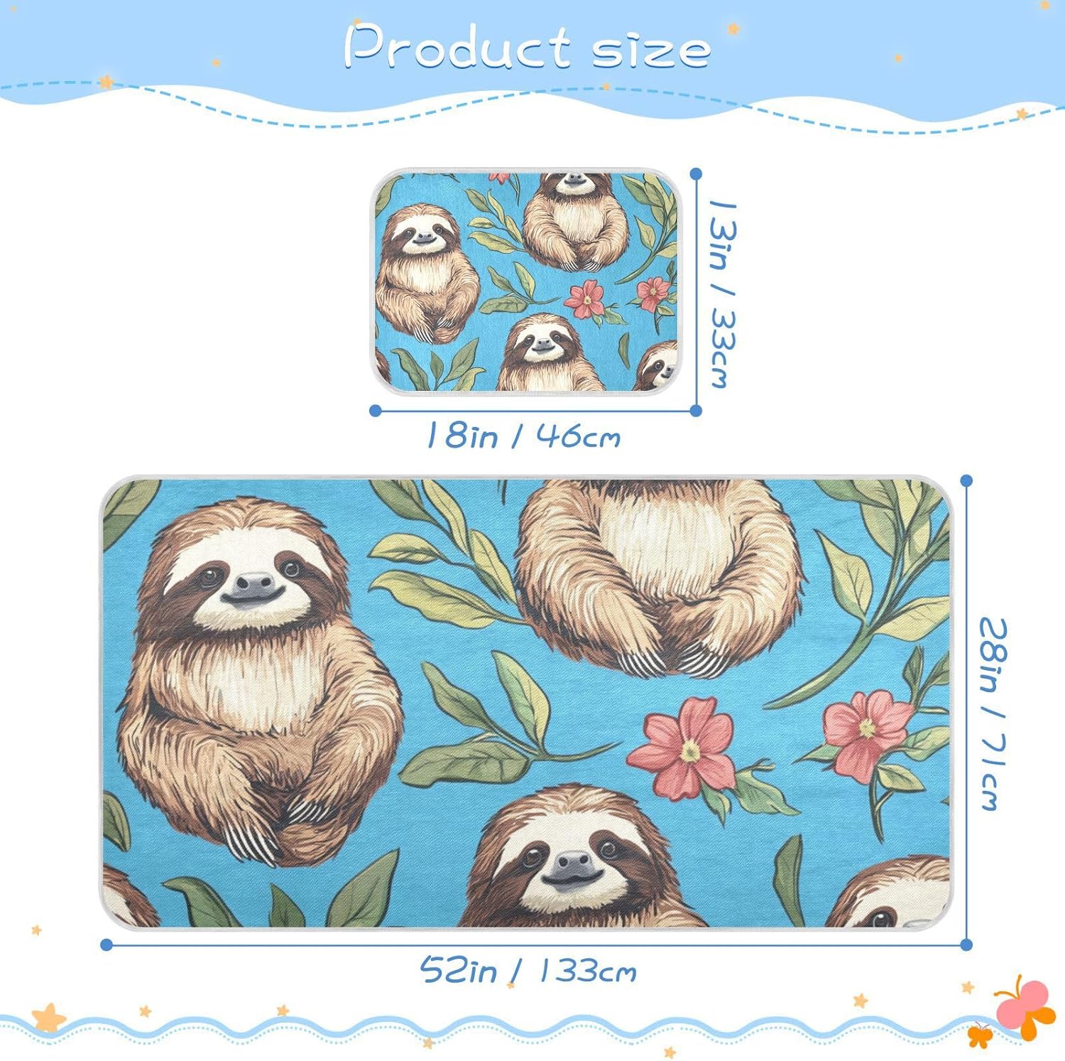 With elastic corners that provide a secure fit, this crib mattress pad stays in place and prevents shifting, ensuring a stable and supportive sleep surface. The adorable blue sloth print adds a charming touch to the nursery, making it a stylish choice that blends comfort with personality in your babyâs room.