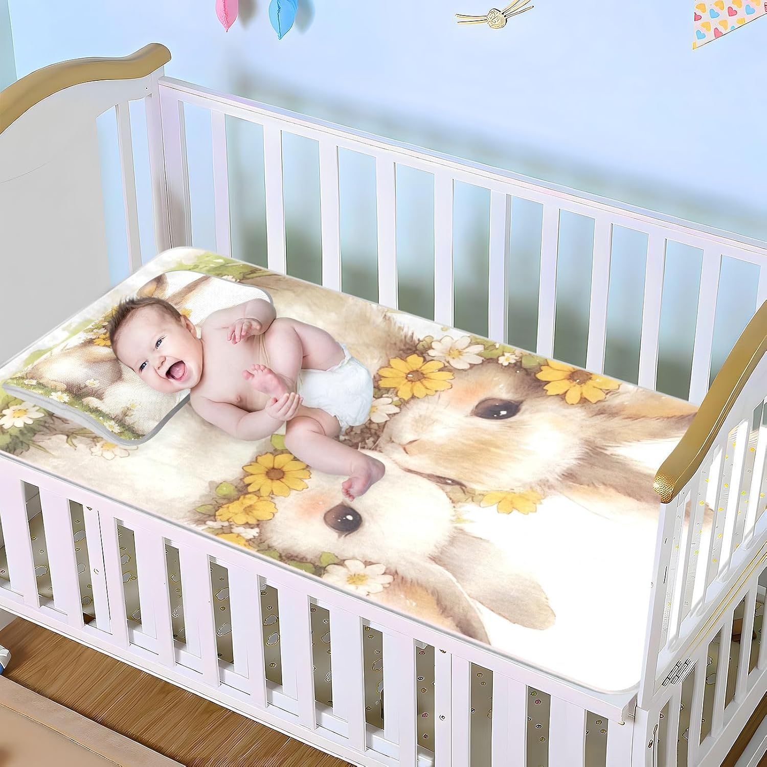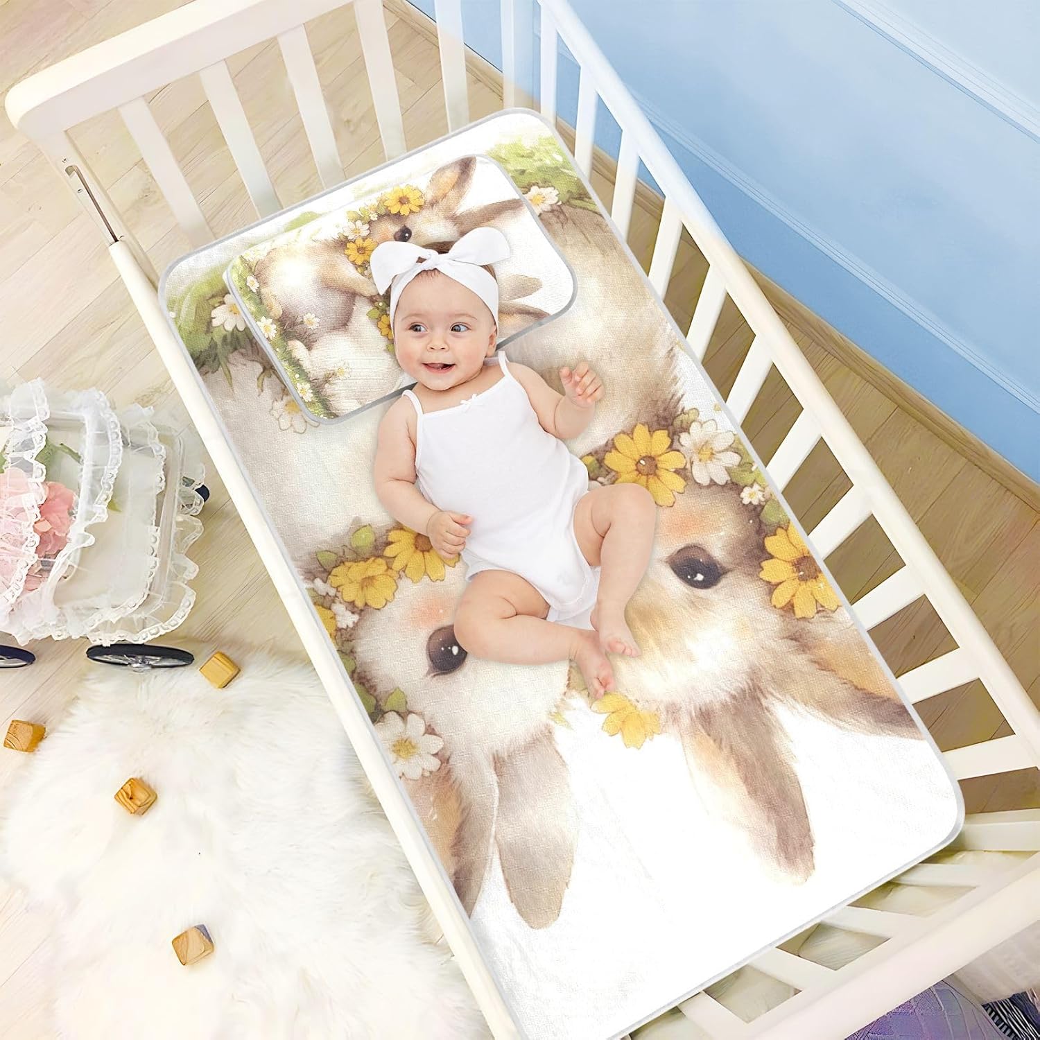 This cooling bunny mattress pad protector is not just functional, but also adds a touch of playfulness and comfort to your child's sleeping space. It protects against spills, stains, and wear while helping to create a safer and more hygienic environment for your little one. Whether you're looking for a quick and easy solution for daily use or a meaningful gift for a new arrival, this pad is a smart choice for any parent.