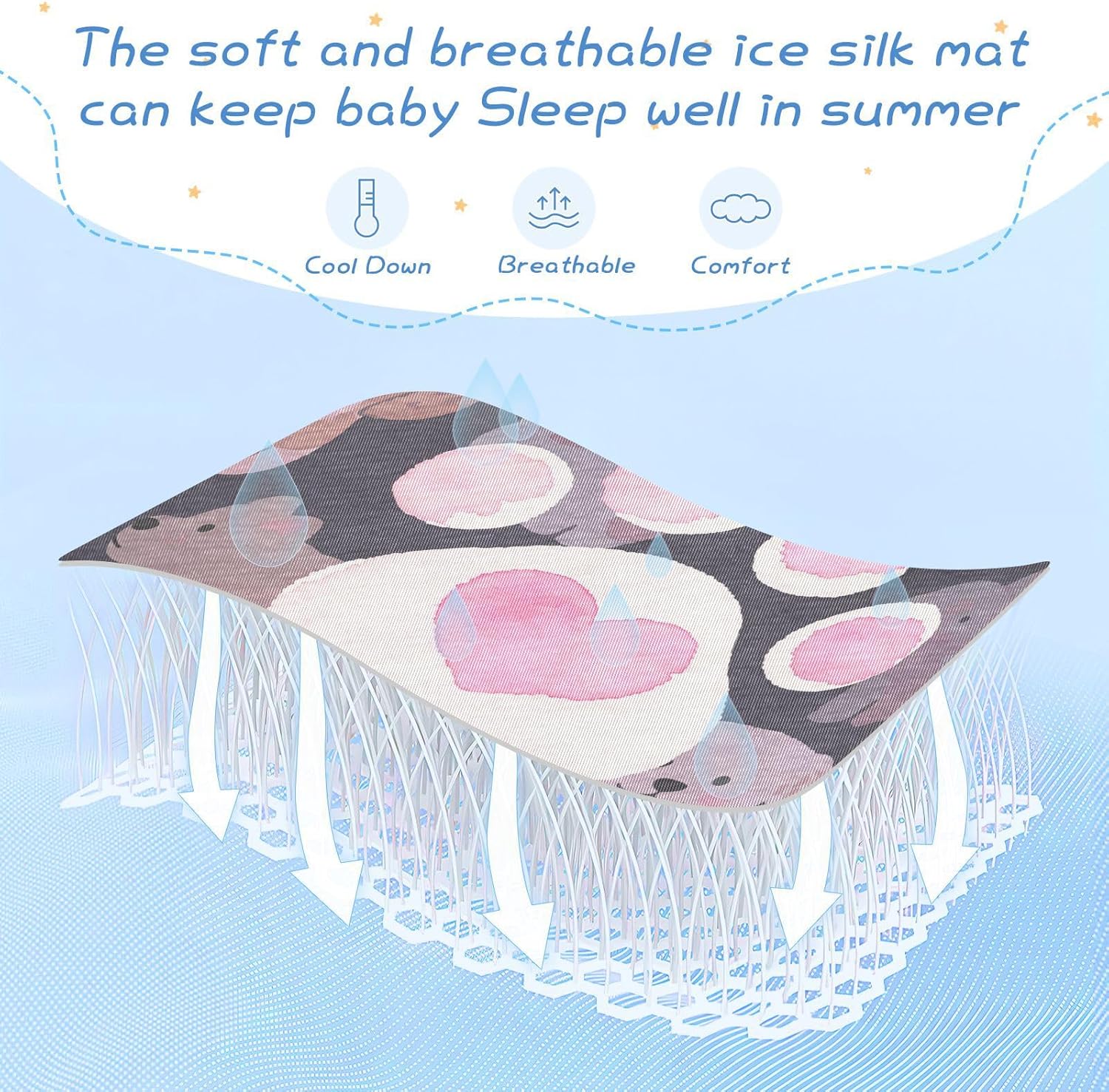 This ultra-soft cooling mattress pad is perfect for keeping your baby comfortable during warm summer nights. Crafted with breathable ice silk fabric and reinforced mesh layers, it offers a gentle, soothing feel while maintaining a cooler and more stable temperature for your little one. The skin-friendly material is especially ideal for babies with sensitive skin, creating a safe and healthy sleep environment every night.