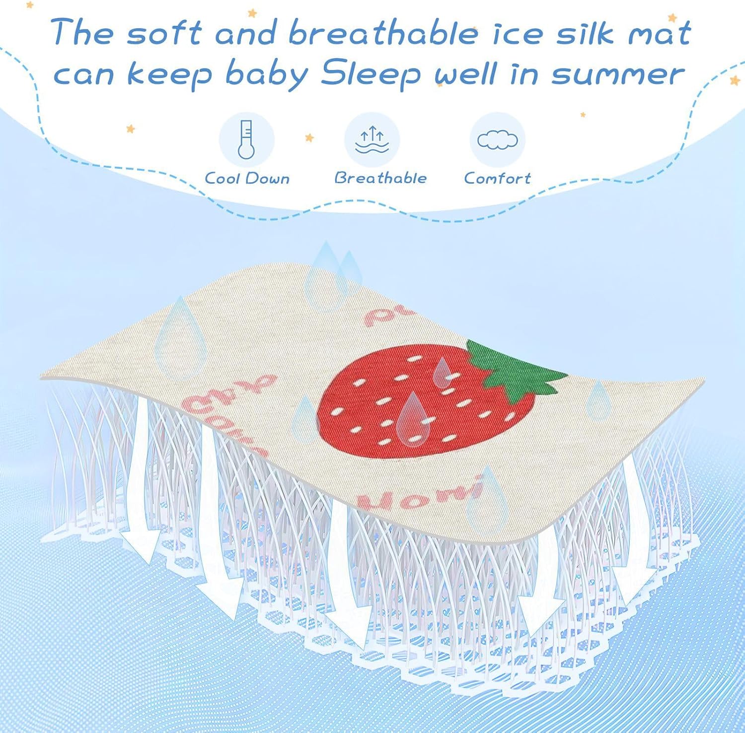 This charming crib mattress pad brings a fruity and playful vibe to your baby's room. Designed with cooling ice silk fabric and breathable holes, it keeps your little one comfortable and refreshed during those sweltering summer nights. The waterproof layer guards against spills and accidents, ensuring your mattress stays clean and protected. The soft knit material is gentle on sensitive baby skin, offering a cozy and safe sleep surface. With a built-in pillowcase, it's easy to install and remove, and machine washable for quick maintenance. Perfect for standard 28x52in crib mattresses, this product is a great choice for parents seeking both style and functionality.