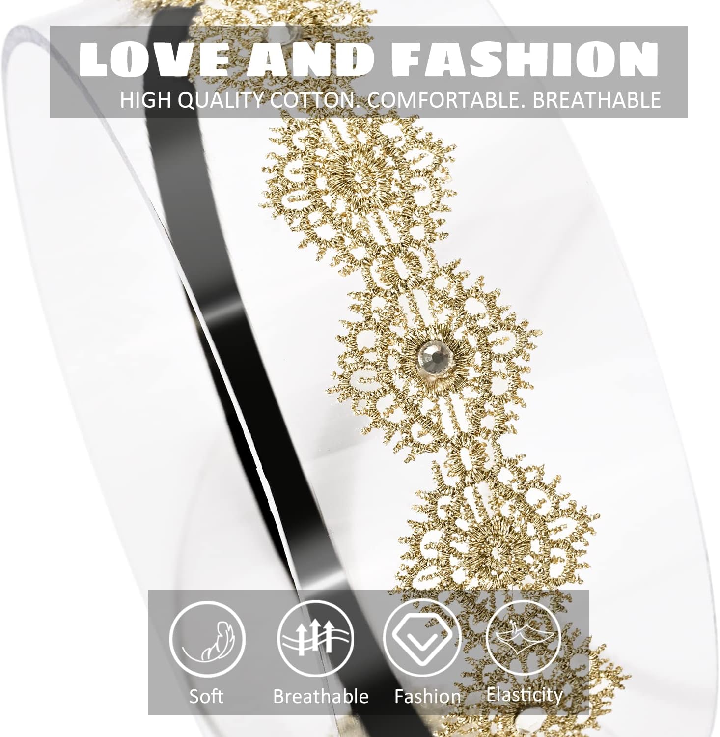 This baby girl headband is crafted with extra care to provide a gentle and secure fit for your little one's delicate head. Soft cotton lace makes it comfortable for all-day wear, while intricate embellishments of shimmering rhinestones, pearls, and glitter powder add a touch of elegance and whimsy. The adjustable elastic band ensures a snug but flexible fit, perfect for keeping up with your babyâs active adventures.