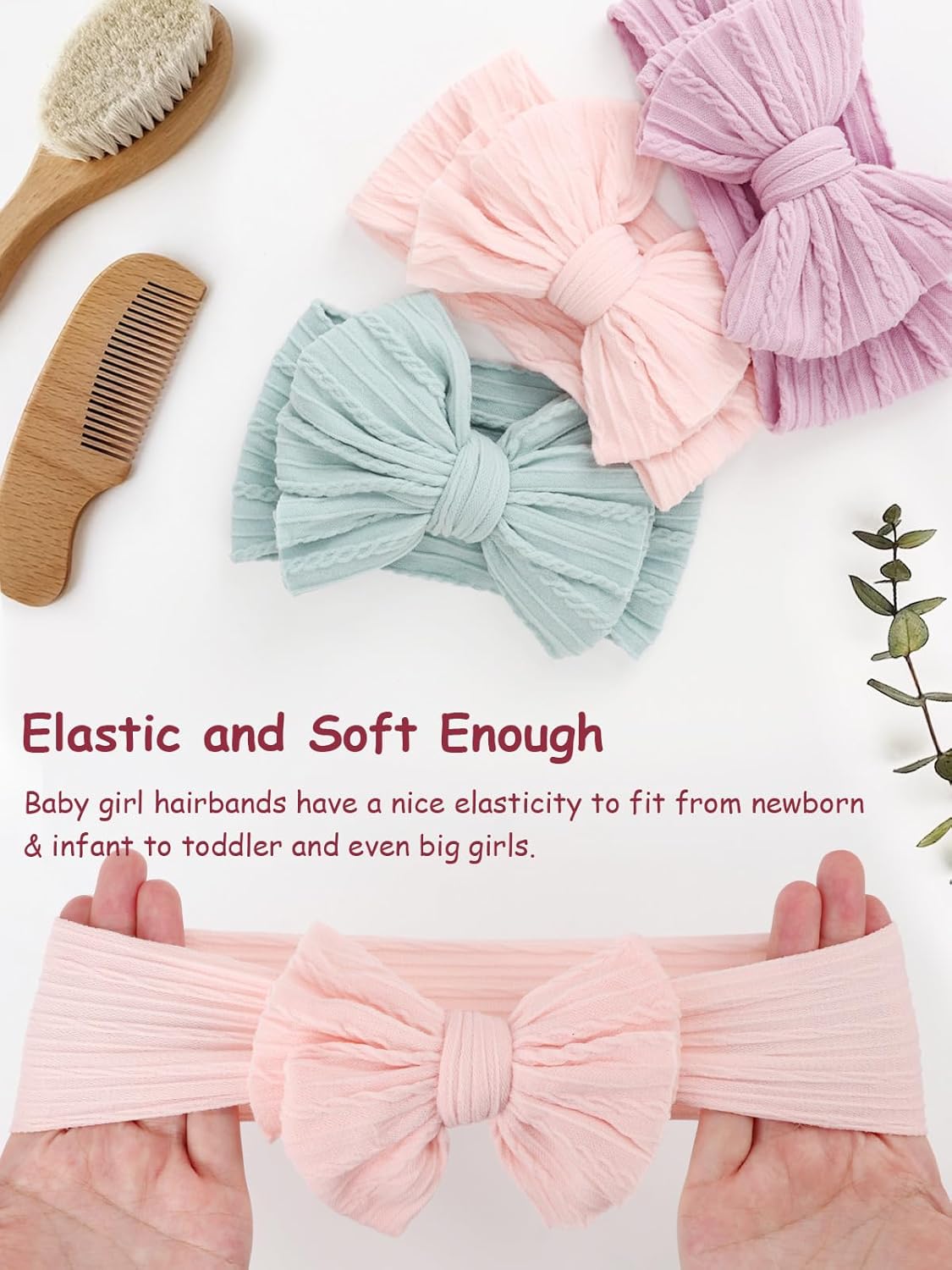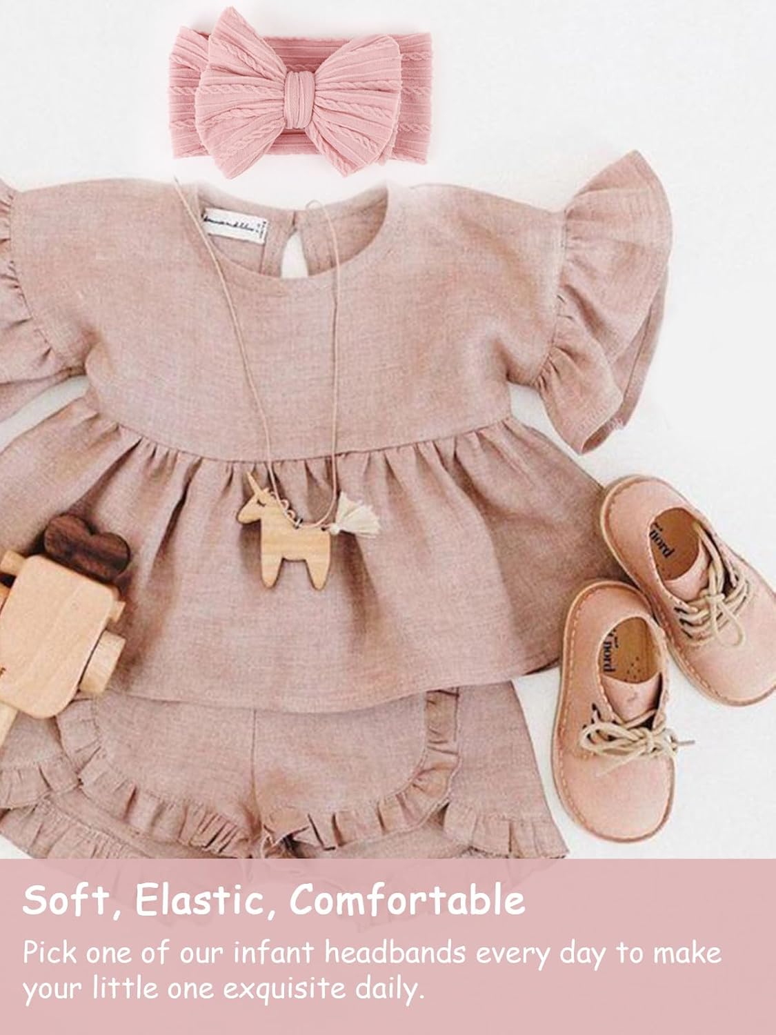 These soft, stretchy, and handmade baby headbands are made from 95% nylon and 5% spandex, offering a perfect blend of comfort and style. Designed with delicate bows, they stay securely in place throughout the day, adapting easily to your babyâs head growth. Whether you're dressing your little one for a photoshoot or a casual outing, these headbands add a touch of elegance and charm to any outfit.