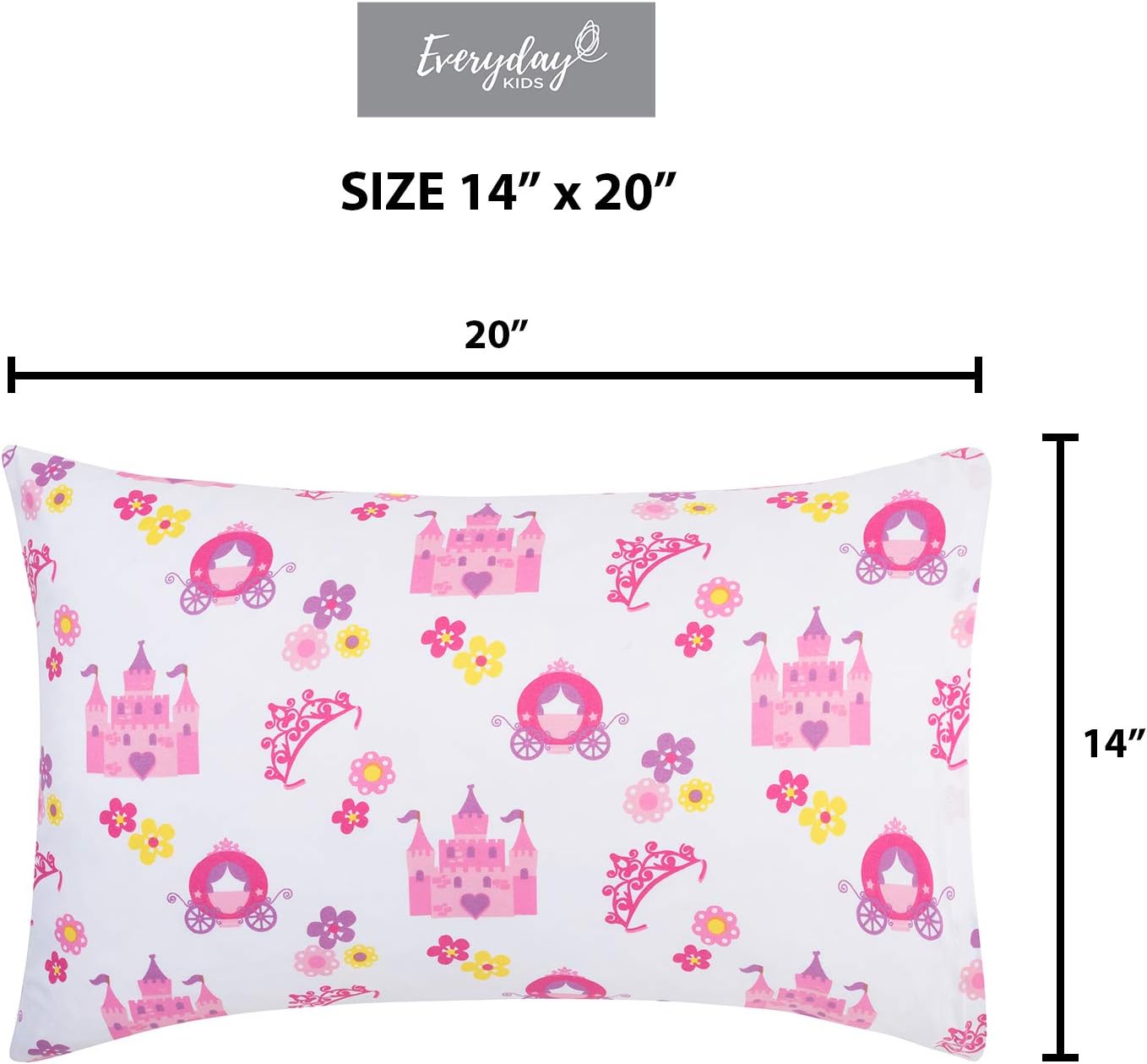These pillowcases bring comfort and whimsy to your little oneâs bedtime, no matter where the journey takes them. Designed with a playful Princess Storyland theme, they transform sleep time into a magical experience for toddlers ages 2-4.