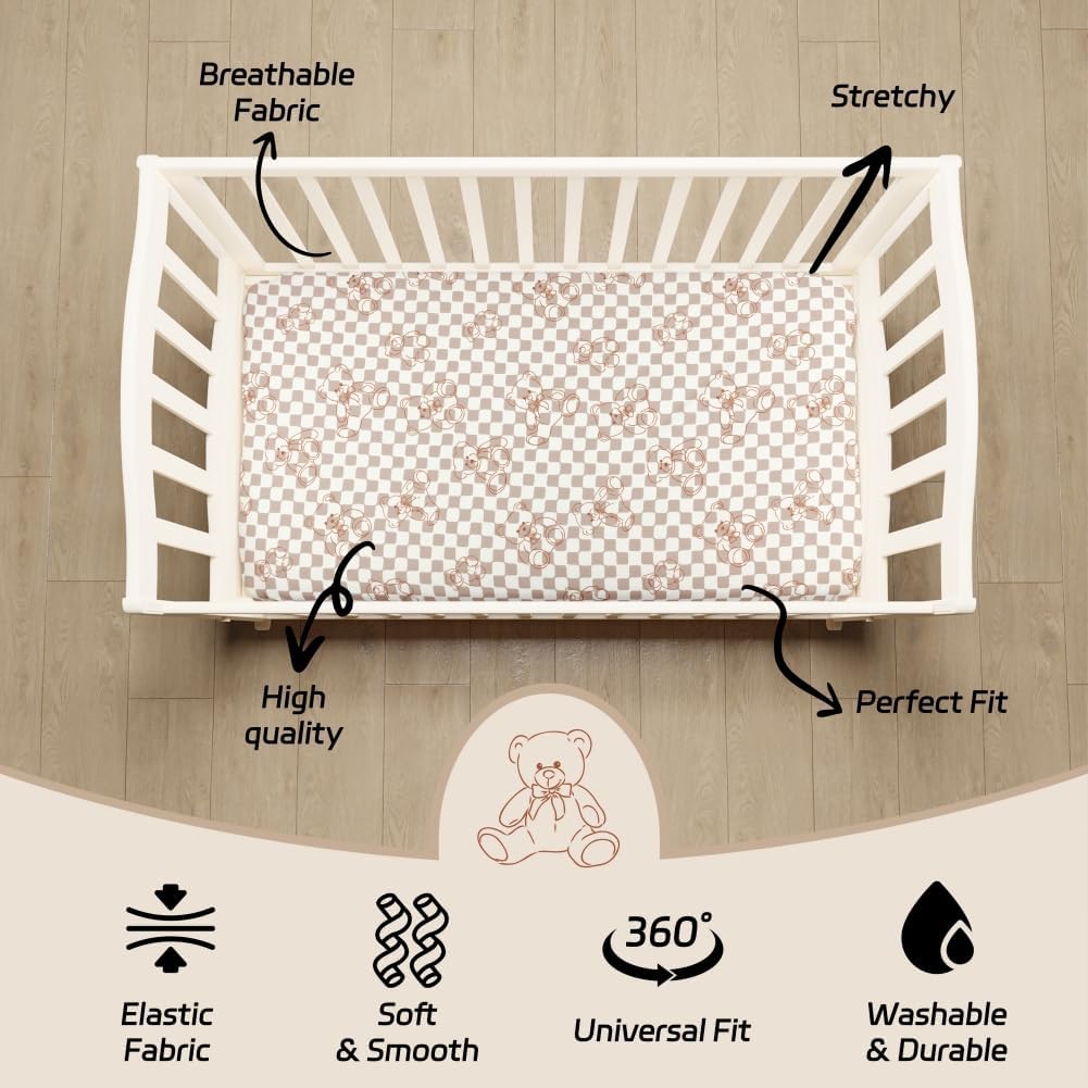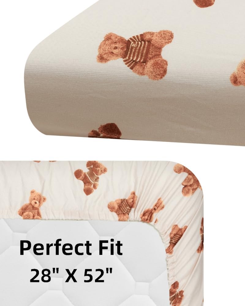 Each sheet in the set is fitted with an elastic band around all four sides, ensuring a secure and snug fit on most crib mattress sizes. This makes the set ideal for everyday use, offering peace of mind in case of spills or accidents. The four-piece pack includes multiple sheets for replacement, making it a practical and thoughtful gift for baby showers, birthdays, or any special occasion.