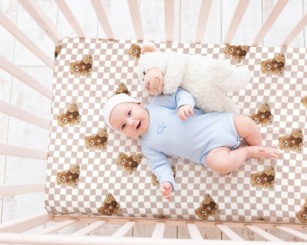 This FIGEPO Fitted Baby Neutral Crib Sheet Set is a perfect blend of bohemian style and practicality, featuring a cozy buffalo check and bear print design. Its gender-neutral color scheme makes it adaptable to any nursery theme, from minimalist to rustic, and ensures it will never go out of style. The soft, breathable fabric is gentle on your baby's sensitive skin, providing comfort and a safe sleep environment.