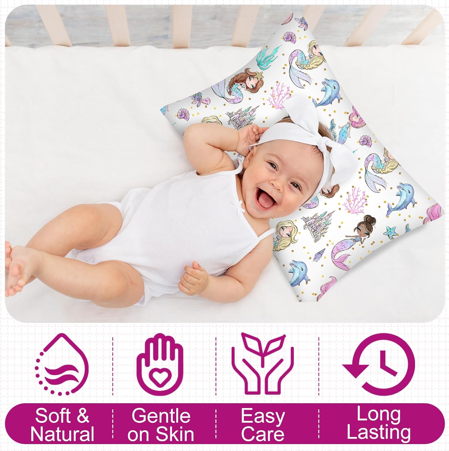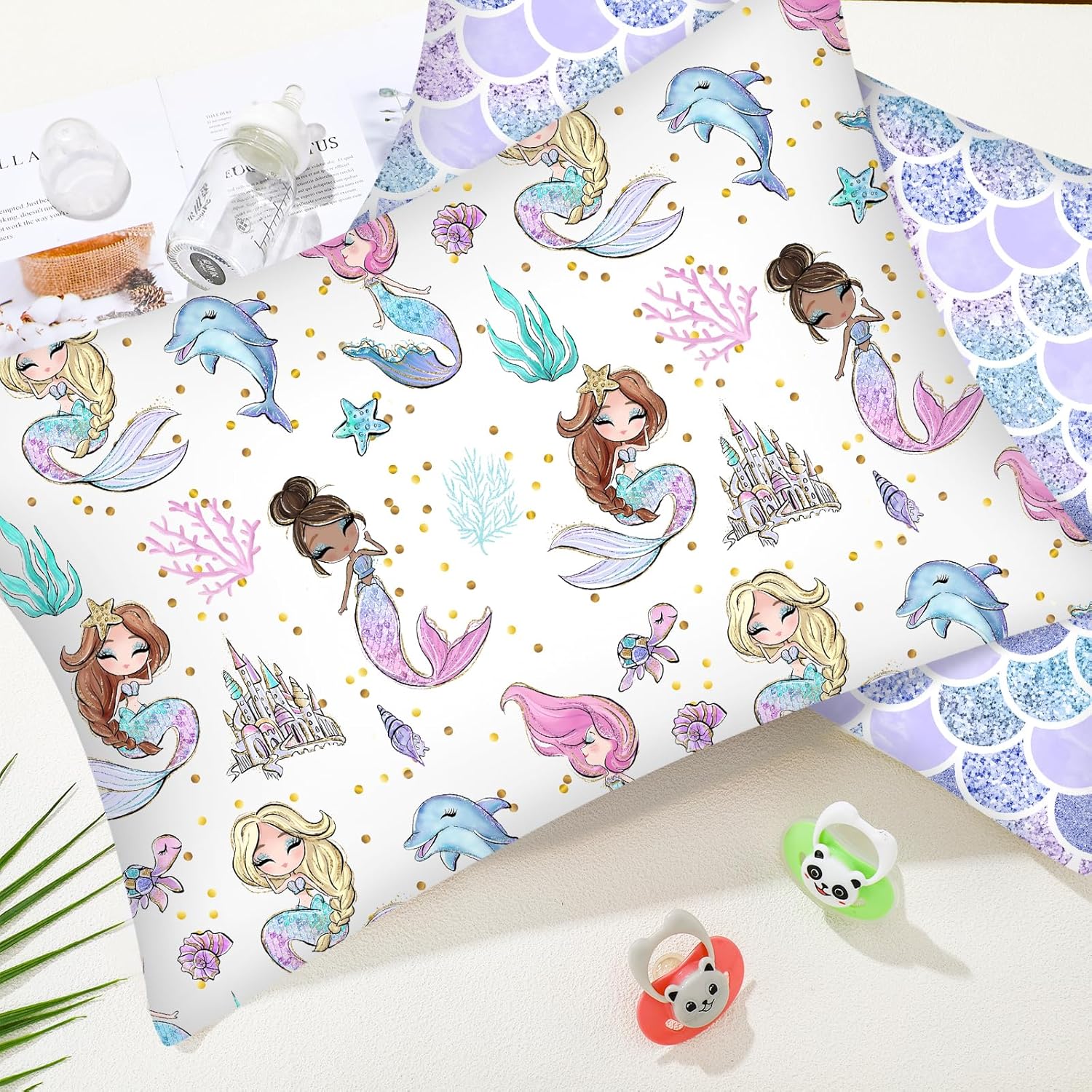 The enchanting mermaid design adds a touch of whimsy and charm to your baby's room. It's not just a pillowcase â it's a bedtime accessory that brings magic and warmth to your little one's sleep routine.