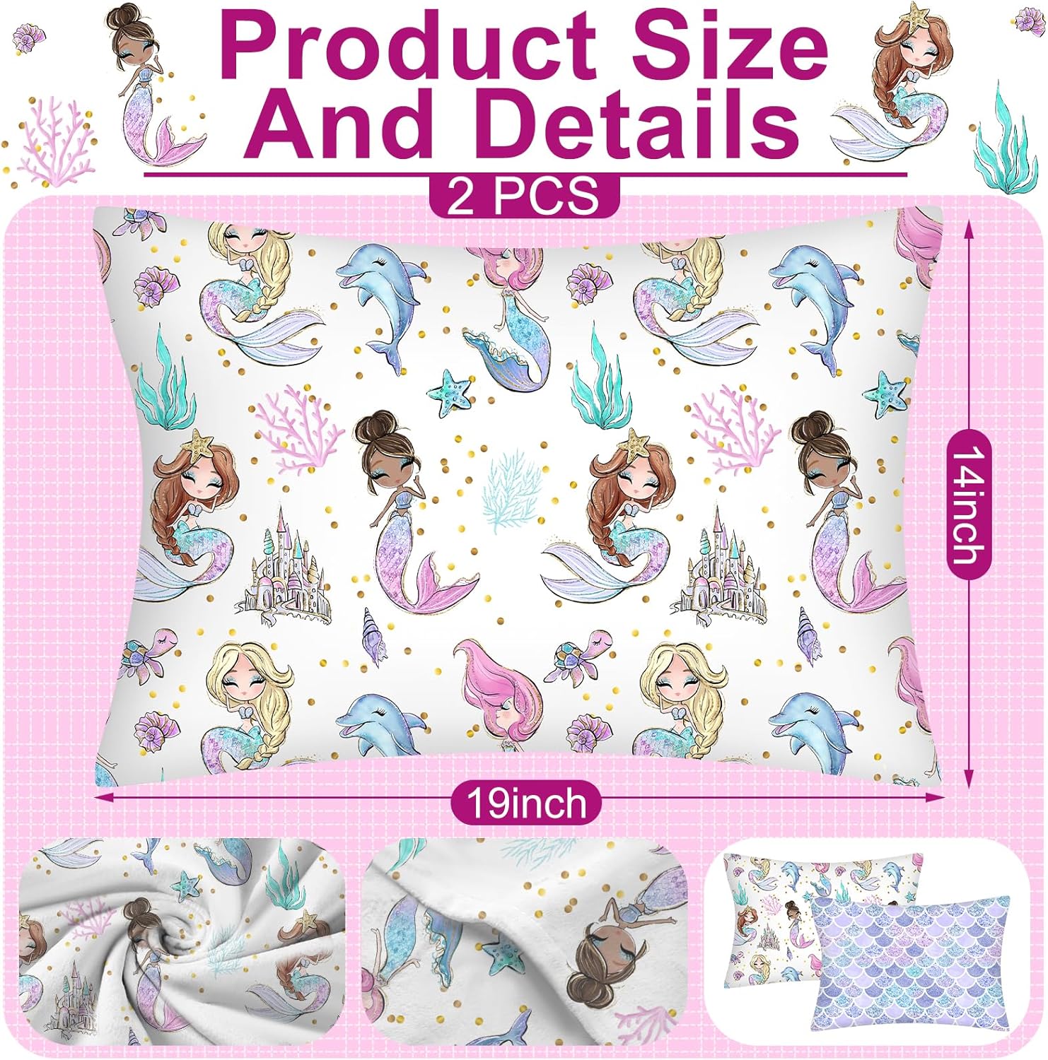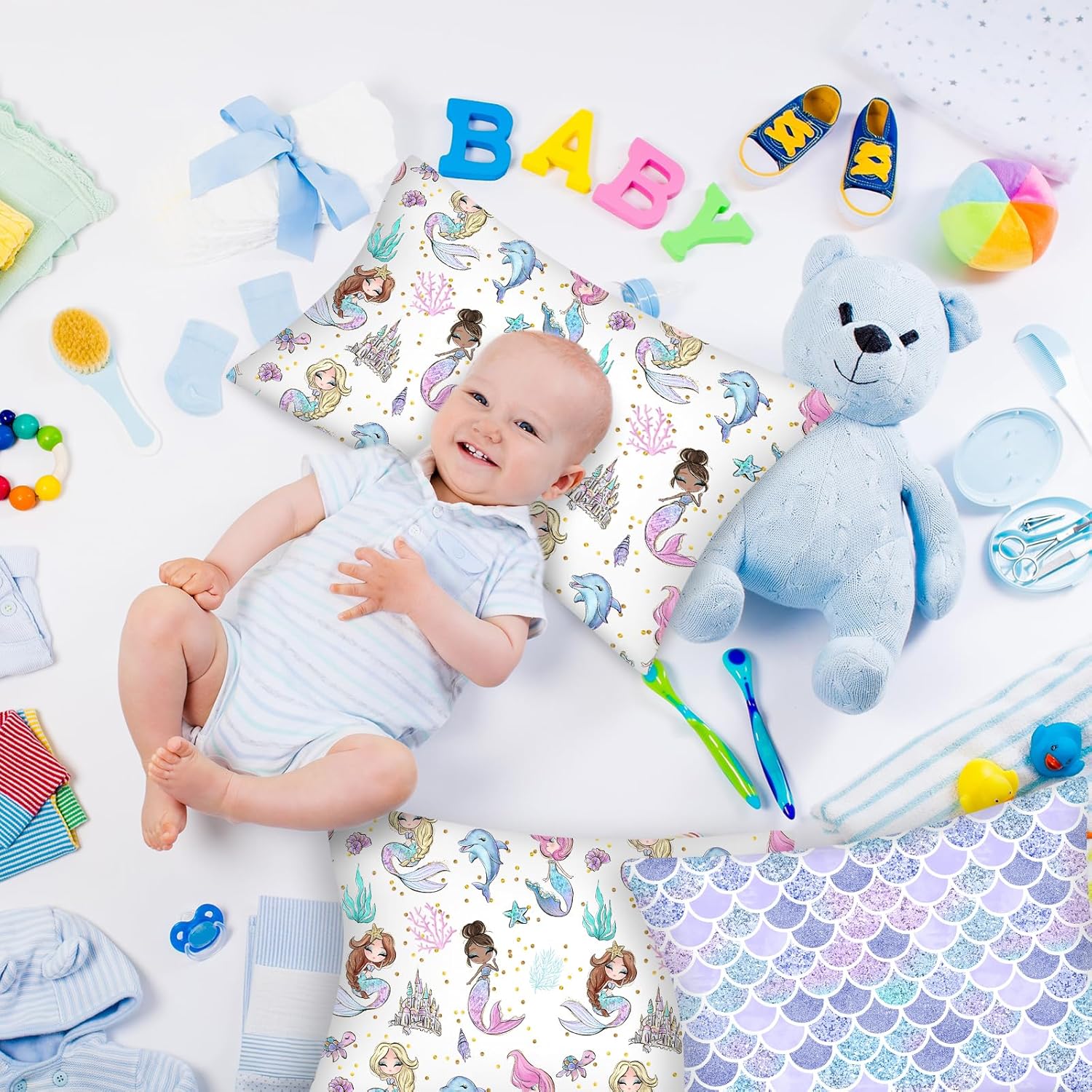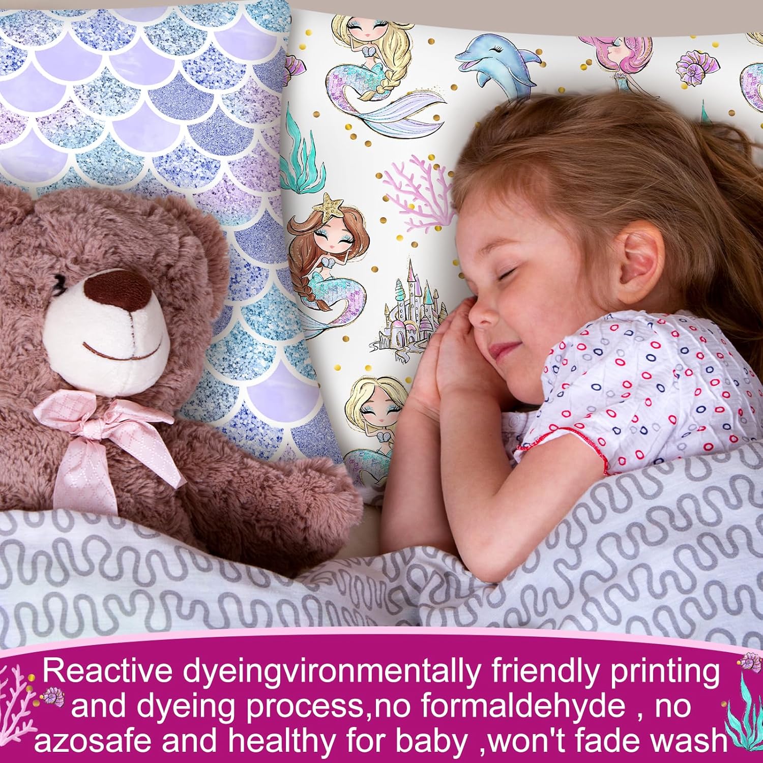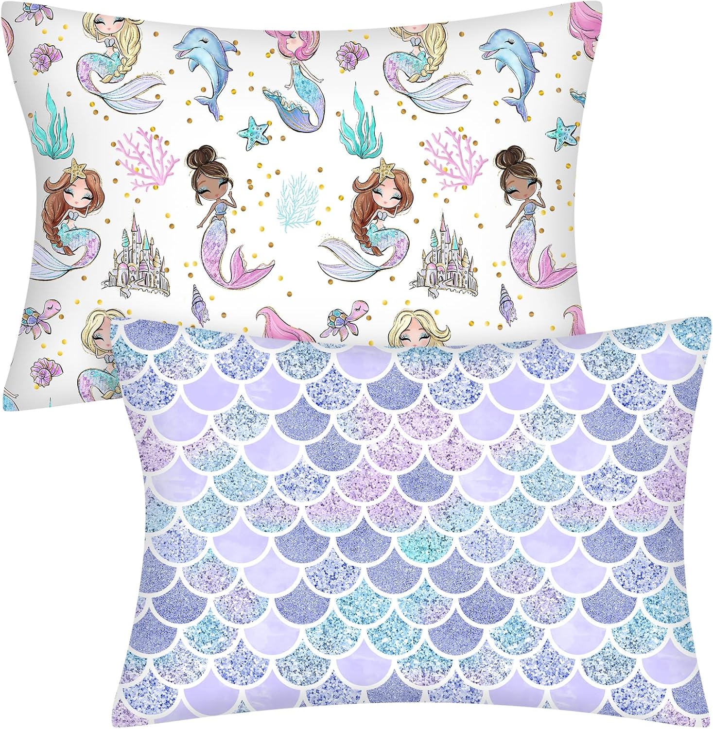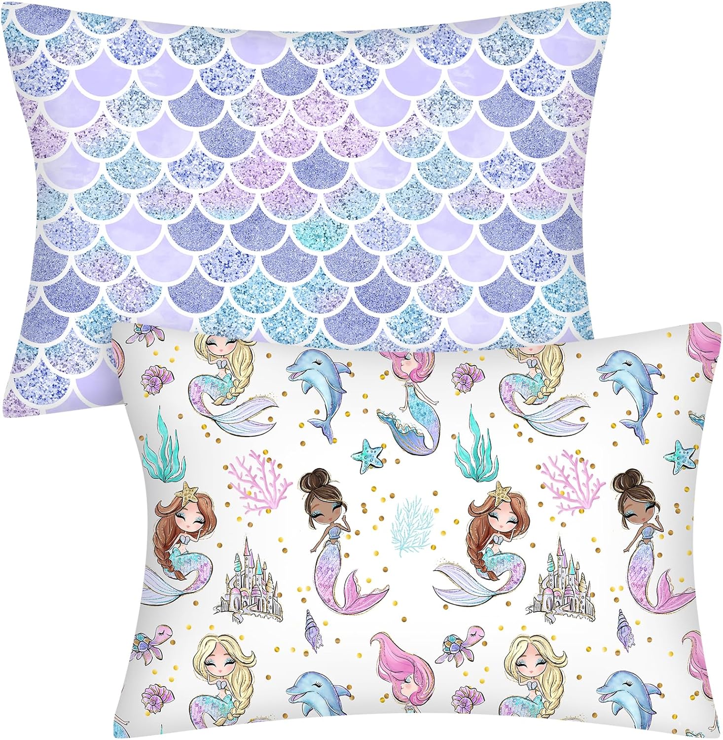 Keywords: toddler pillowcase, mermaid baby pillow, cotton toddler bedding, zipper-free envelope pillowcase, kids travel pillow cover