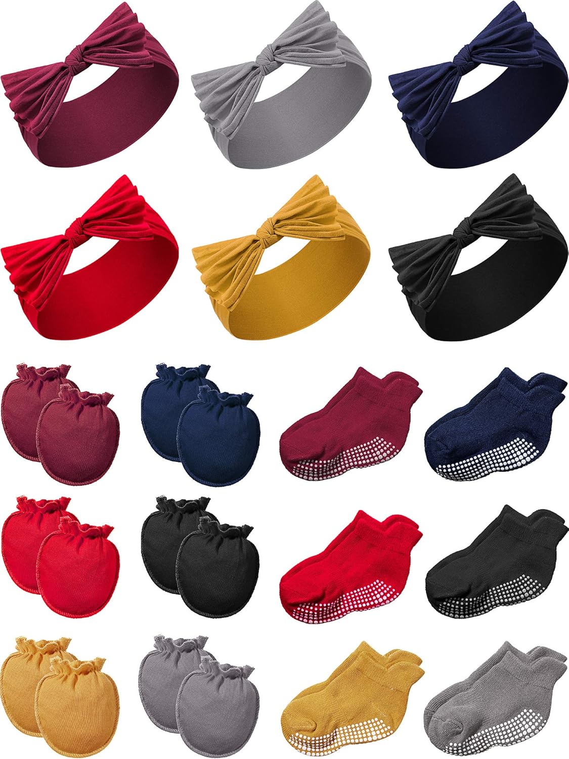 Designed for comfort and style, this 18-piece set from Geyoga is perfect for newborn care and everyday use. Featuring 6 headbands, 6 mittens, and 6 socks, it covers all your baby's needs in a single, convenient package.
