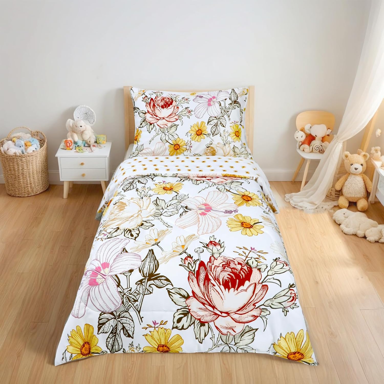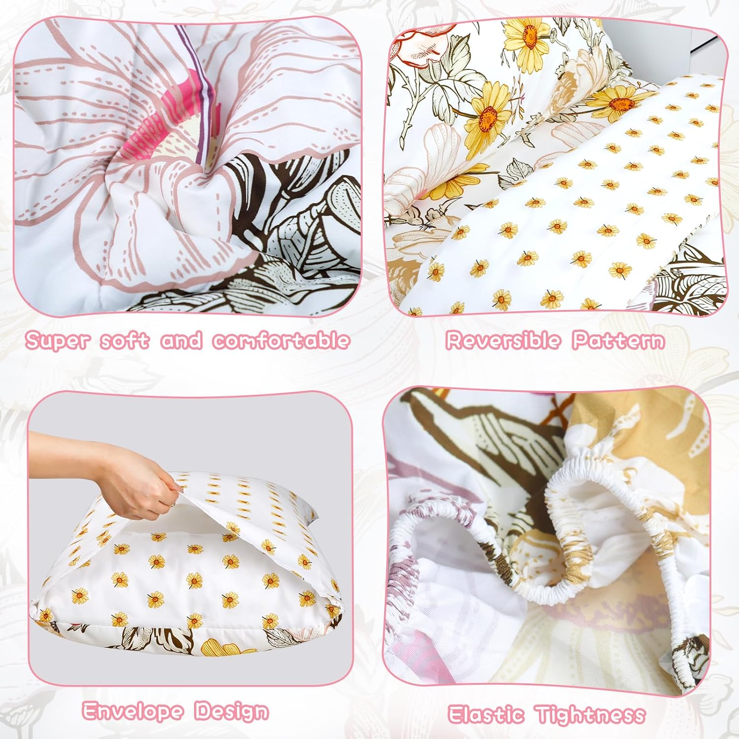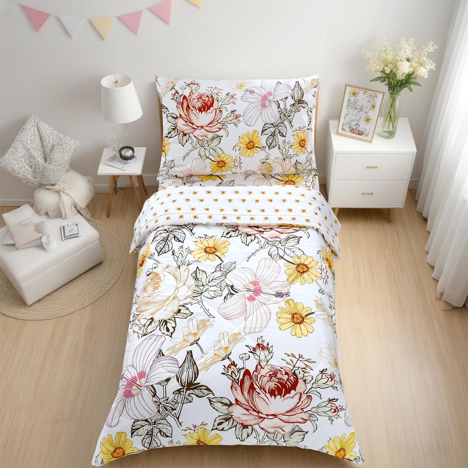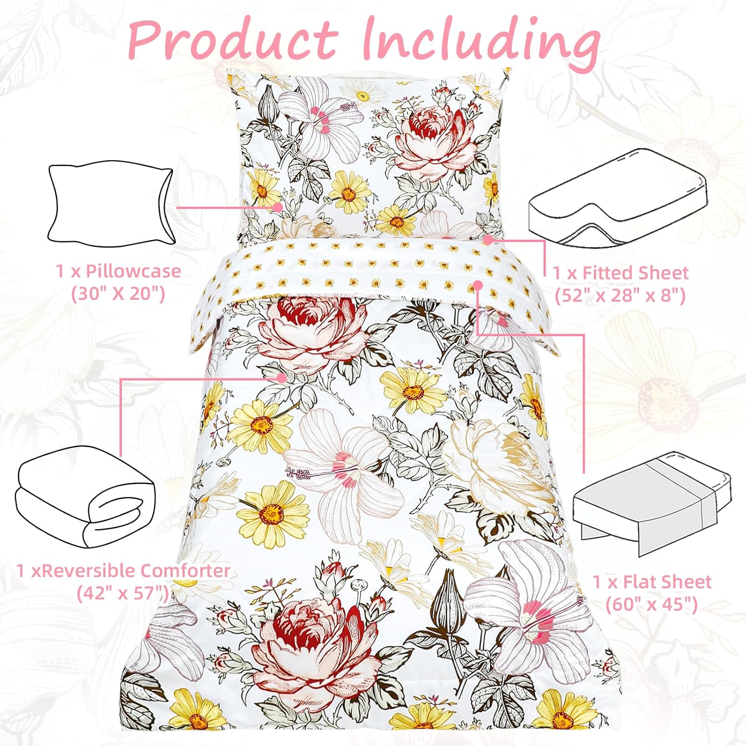 Create a cozy and stylish sleep space for your little one with this adorable 4-piece bedding set. Designed with sweet little girls in mind, it combines soft microfiber fabric with vibrant floral and daisy patterns to offer both comfort and a charming aesthetic.