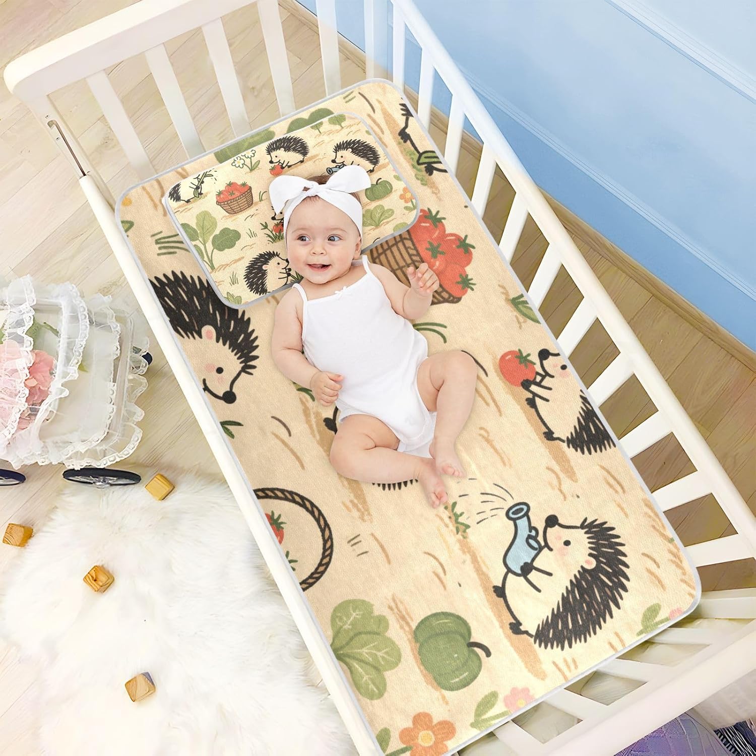 Designed to offer your baby or toddler the perfect sleep environment, our Cooling Crib Mattress Pad is made with ice silk fabric that has breathable holes. These special features help keep your baby cool and comfortable, especially during warm summer nights. The thickened mesh layers provide added support and pressure relief, ensuring a firm yet gentle feel for your child's developing spine. The soft and skin-friendly knit material is gentle on sensitive baby skin, offering an extra layer of protection and comfort without compromising on safety. With a perfect fit for standard baby and toddler cribs (28x52 inches), this mattress pad is not only easy to install but also provides a durable and reliable protective barrier against spills and stains. Its reusable design ensures long-term value and makes it an eco-conscious choice for every parent. Whether it's bedtime or a naptime, this mattress pad is a must-have for any nursery. Itâs built to last, easy to care for, and requires only a cold water wash and gentle cycle for maintenance. No bleach needed. A great gift for baby showers or birthdays, combining practicality with style for a peaceful sleep experience.Cooling Crib Mattress Pad â Soft, Breathable, and Safe for Your Little One