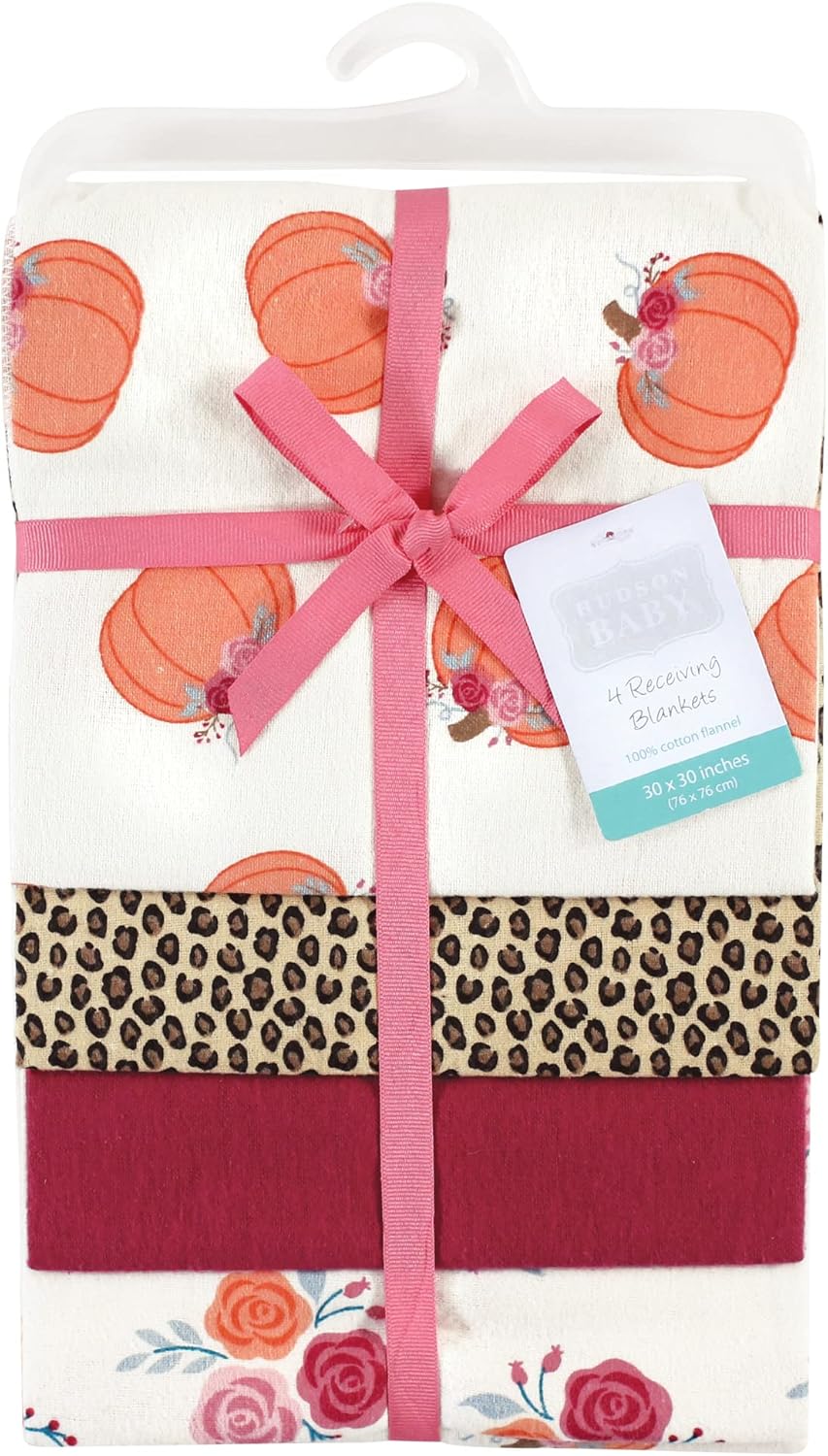Baby receiving blankets, cotton flannel blankets, pumpkin baby blanket, unisex baby bedding, soft baby swaddling blanket.