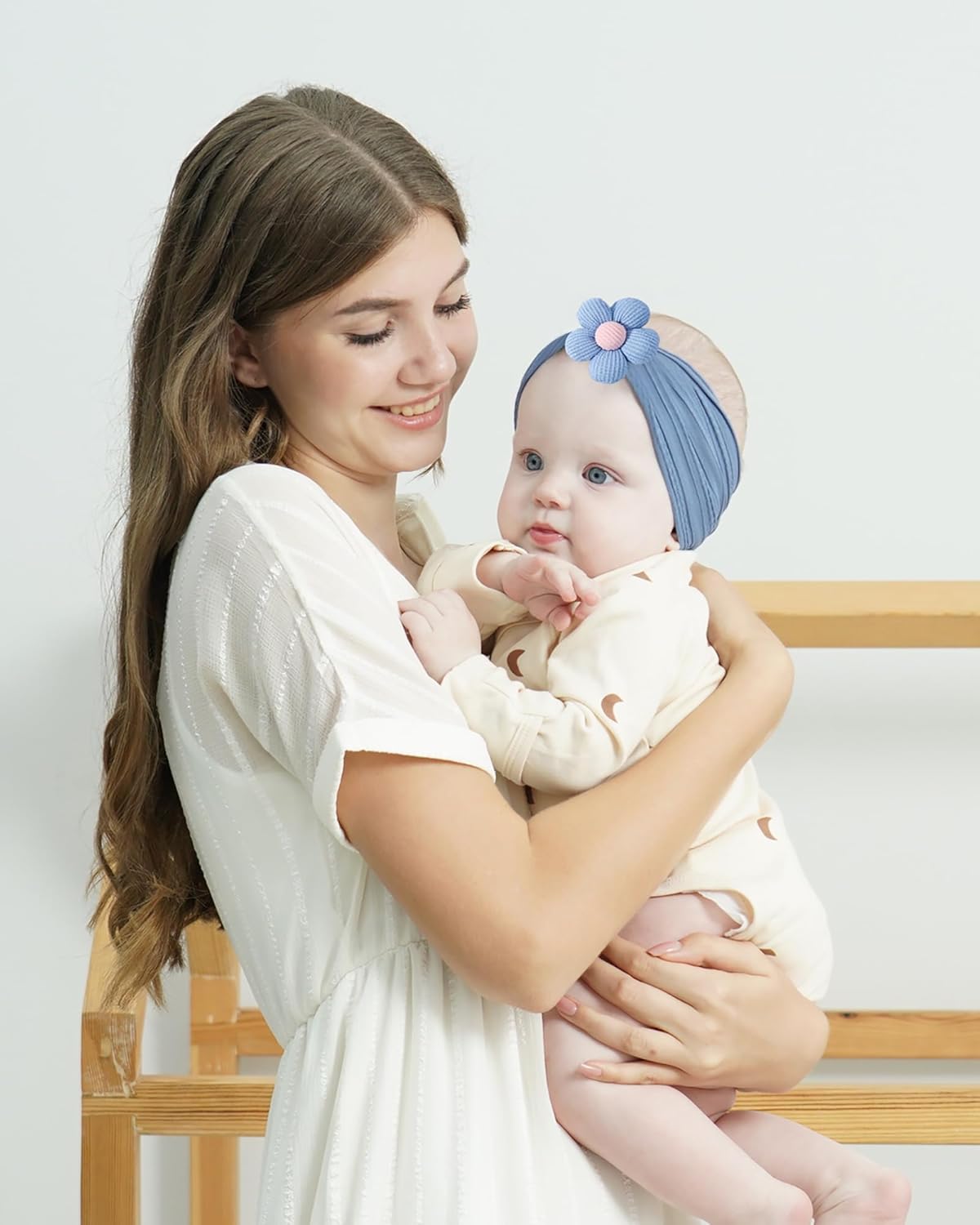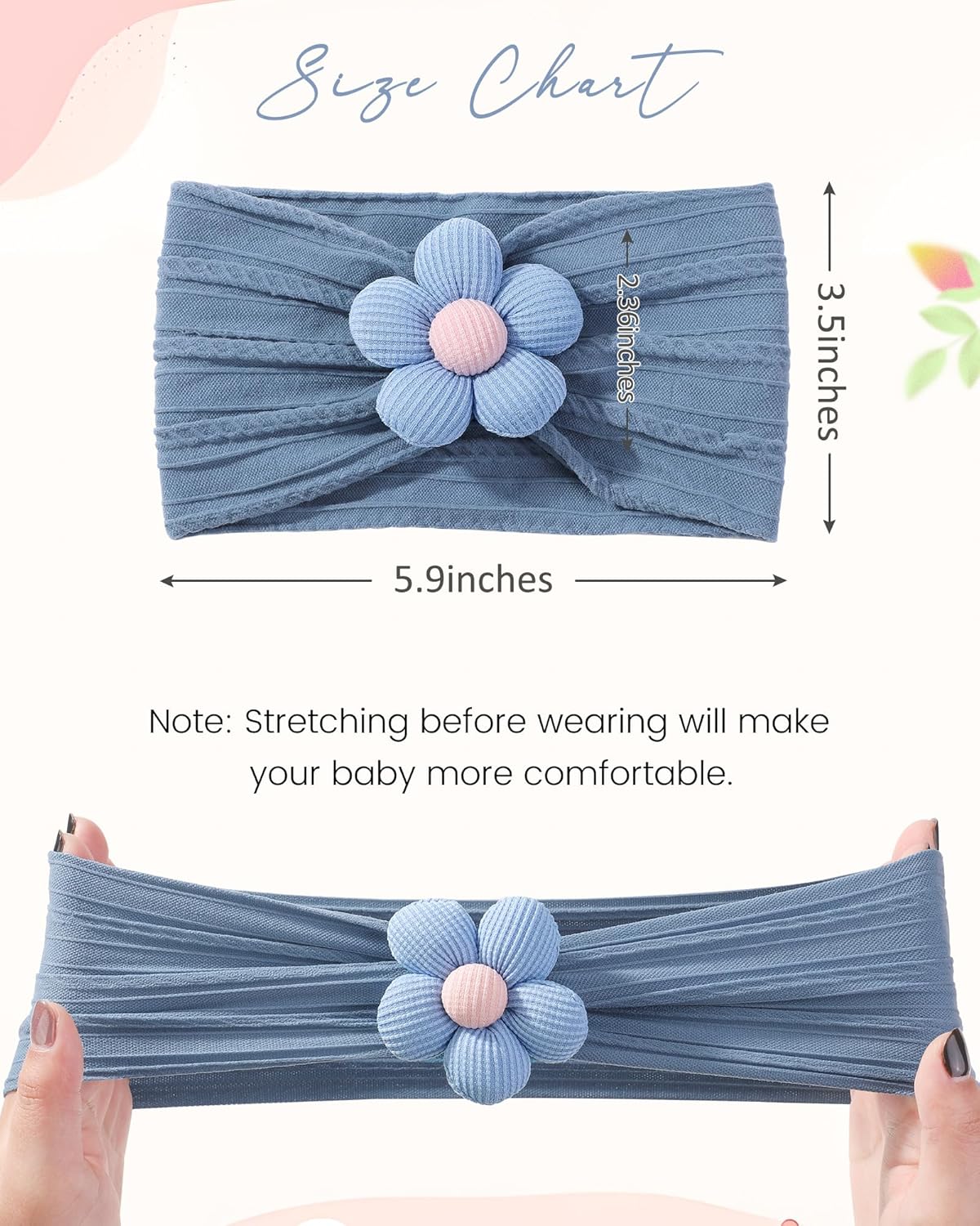 These baby girl headbands are made from extra-soft stretchy nylon, offering a gentle and comfortable fit for your babyâs delicate skin. The lightweight design ensures all-day wearability, making them ideal for newborns and preemies who may have sensitive heads.