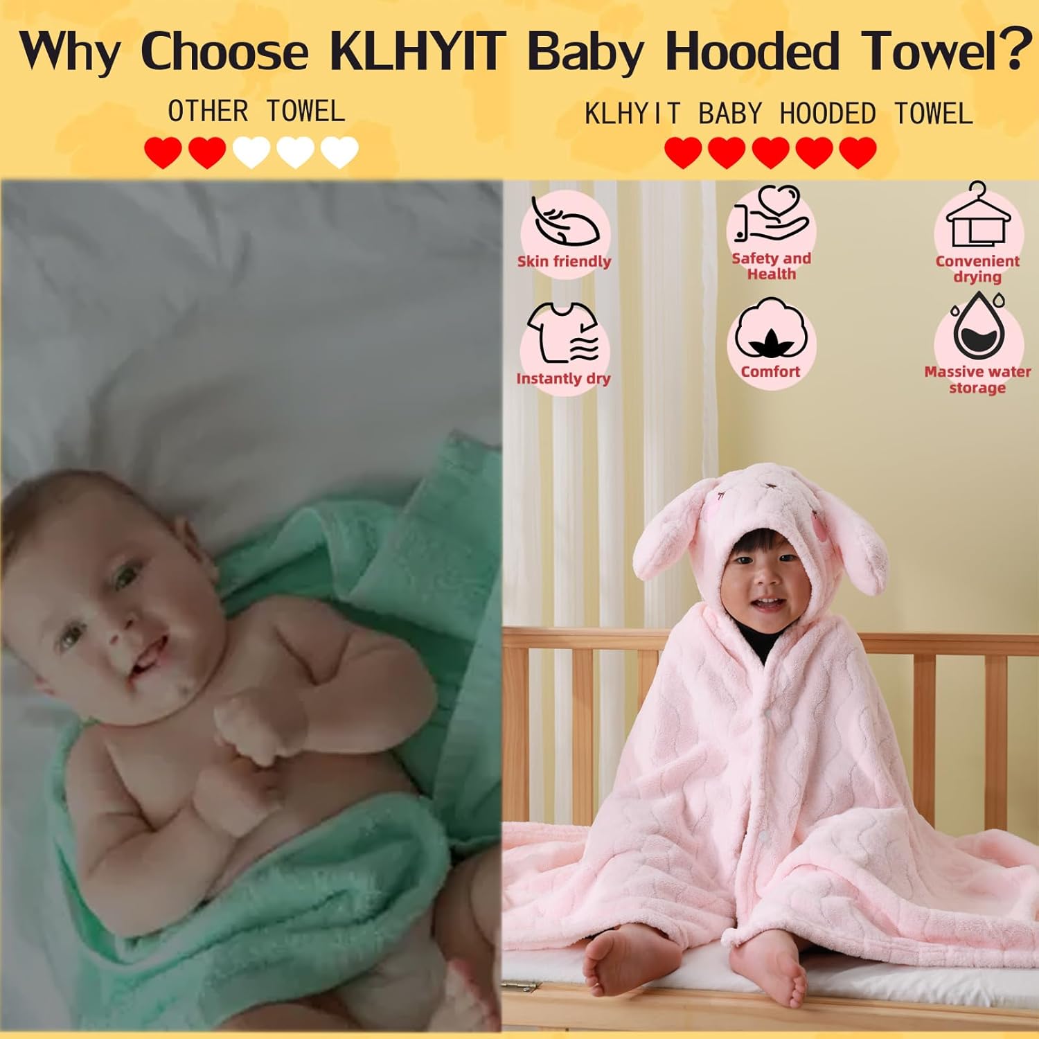 KLHYIT toddler hooded bath towels are ultra soft, ultra absorbent, and perfect for newborns, infants, and kids up to 6 years. Designed for comfort, these 2-pack towels feature a cute animal hooded design and can be used at home, the pool, or the beach. A great gift for baby registries and birthdays.
