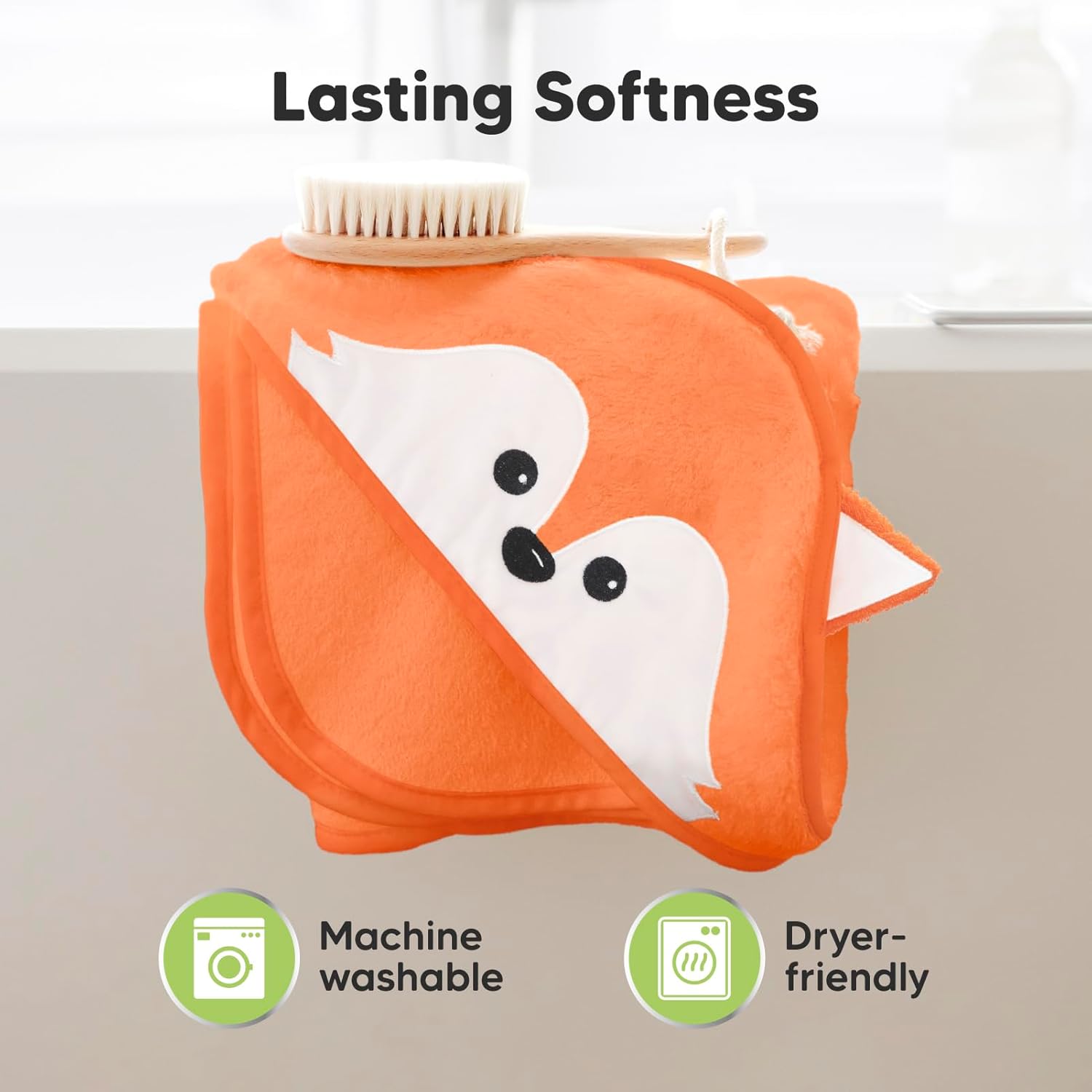 The unique hood design ensures warmth and protection for your baby during bath time, making it a reliable tool for gentle drying and wrapping. Its machine-washable and dryer-friendly construction means it stays soft and fresh for years, while the adorable fox pattern adds a playful and charming touch to your babyâs care routine.