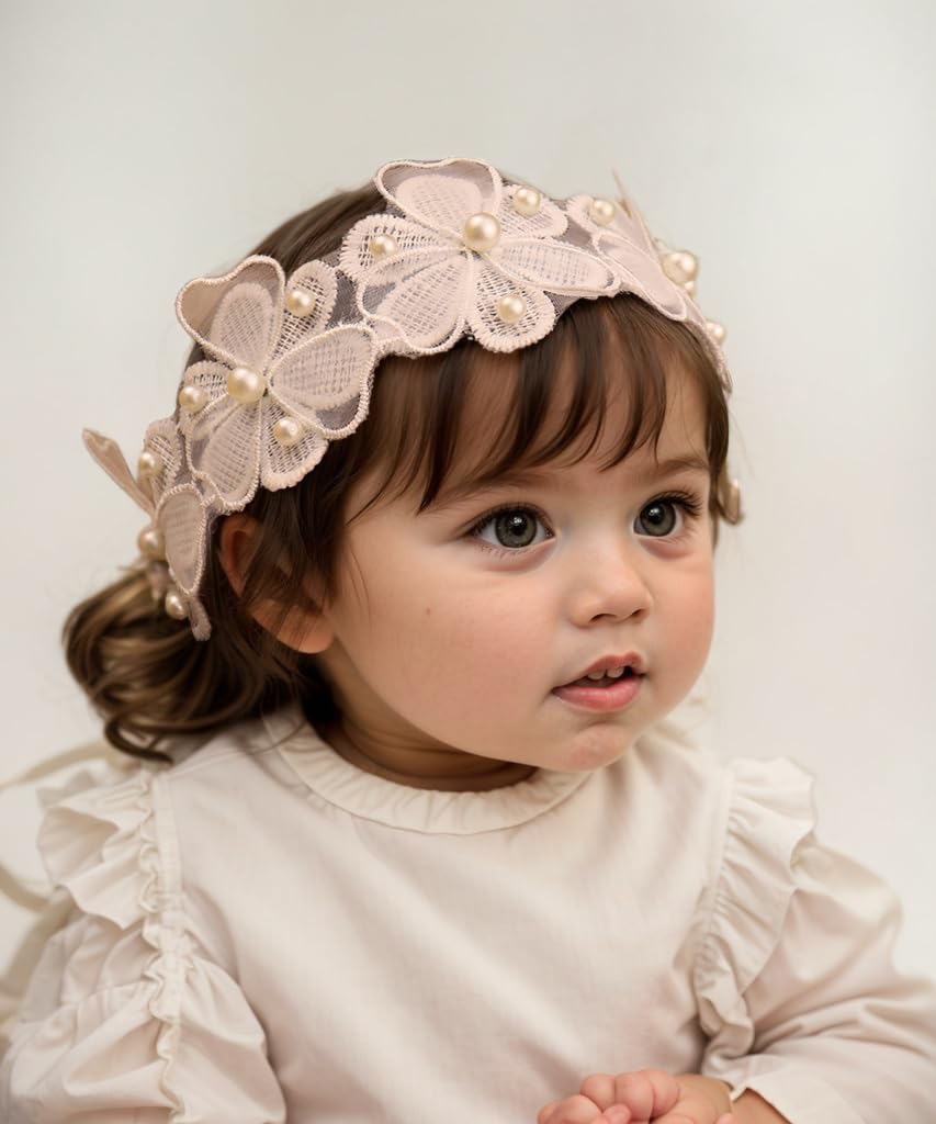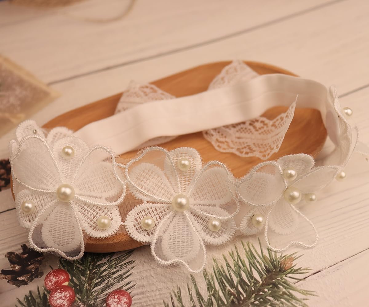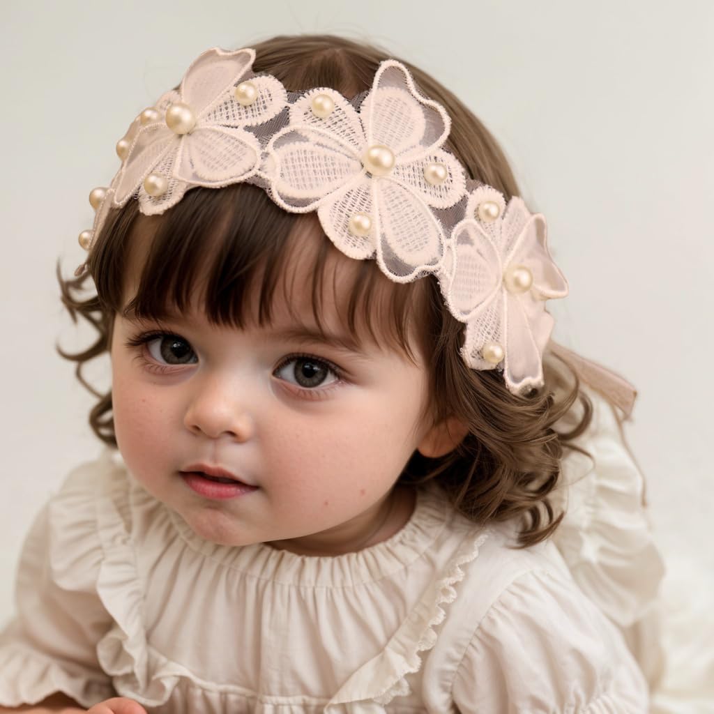 This Kenjudess Baby Girls Headband is a must-have for parents who want to dress their baby with care and style. The combination of floral lace and faux pearls makes it a striking accessory thatâs both trendy and classic. It's designed with an adjustable band to ensure a perfect fit for newborns and toddlers alike, offering comfort and confidence throughout the day. Whether for a birthday party, baby shower, or everyday wear, this headband is the perfect way to make your little one shine with grace and charm.