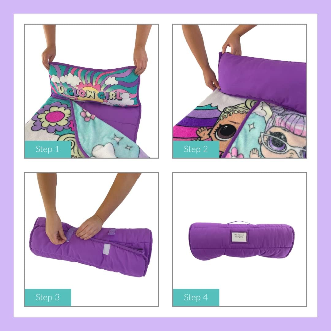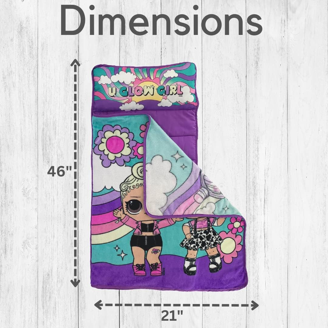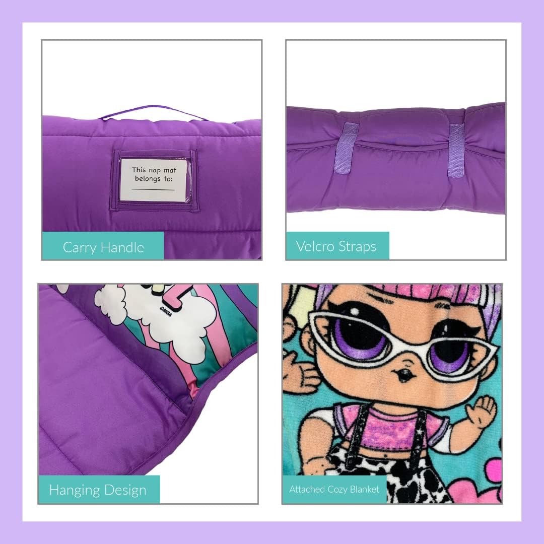 This LOL Surprise! toddler nap mat is designed with your child's comfort in mind. The soft plush material wraps them in warmth and security, making naptime feel like a special treat. Its compact size of 24" x 45" fits perfectly on preschool and daycare cots, ensuring your child has a dedicated and safe spot to rest.