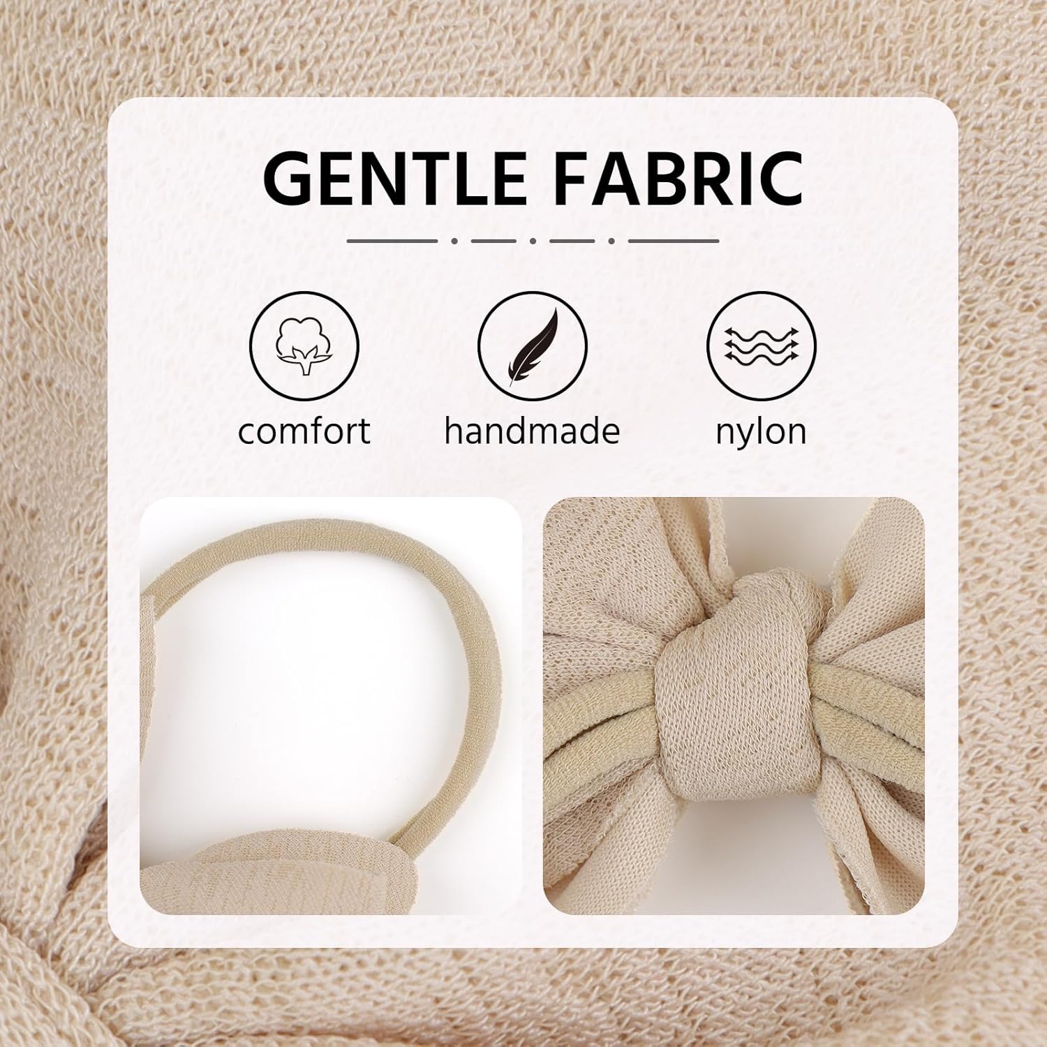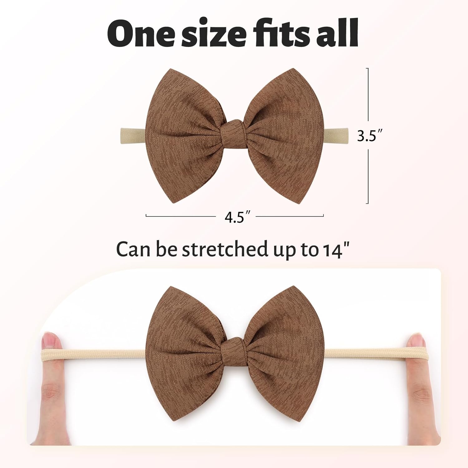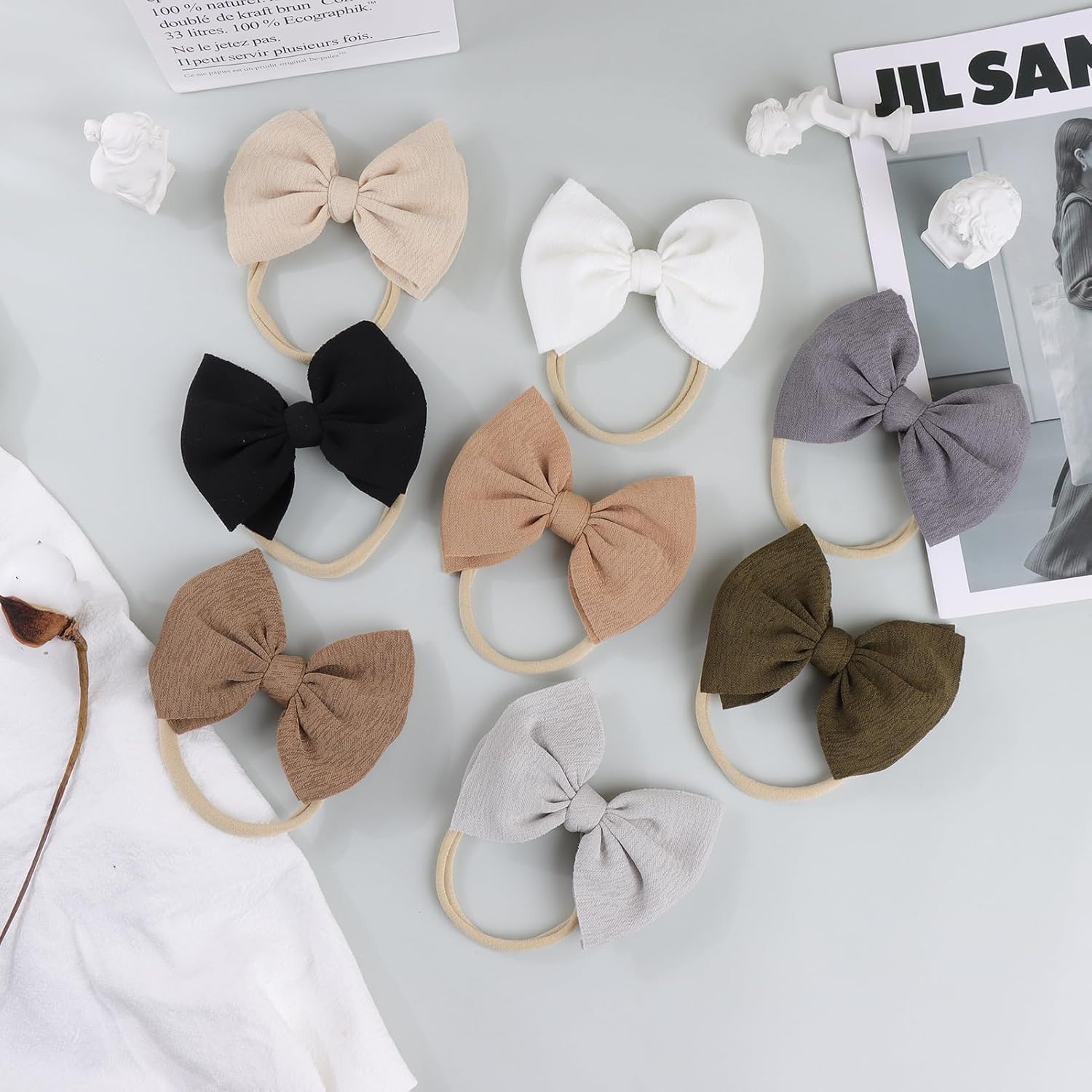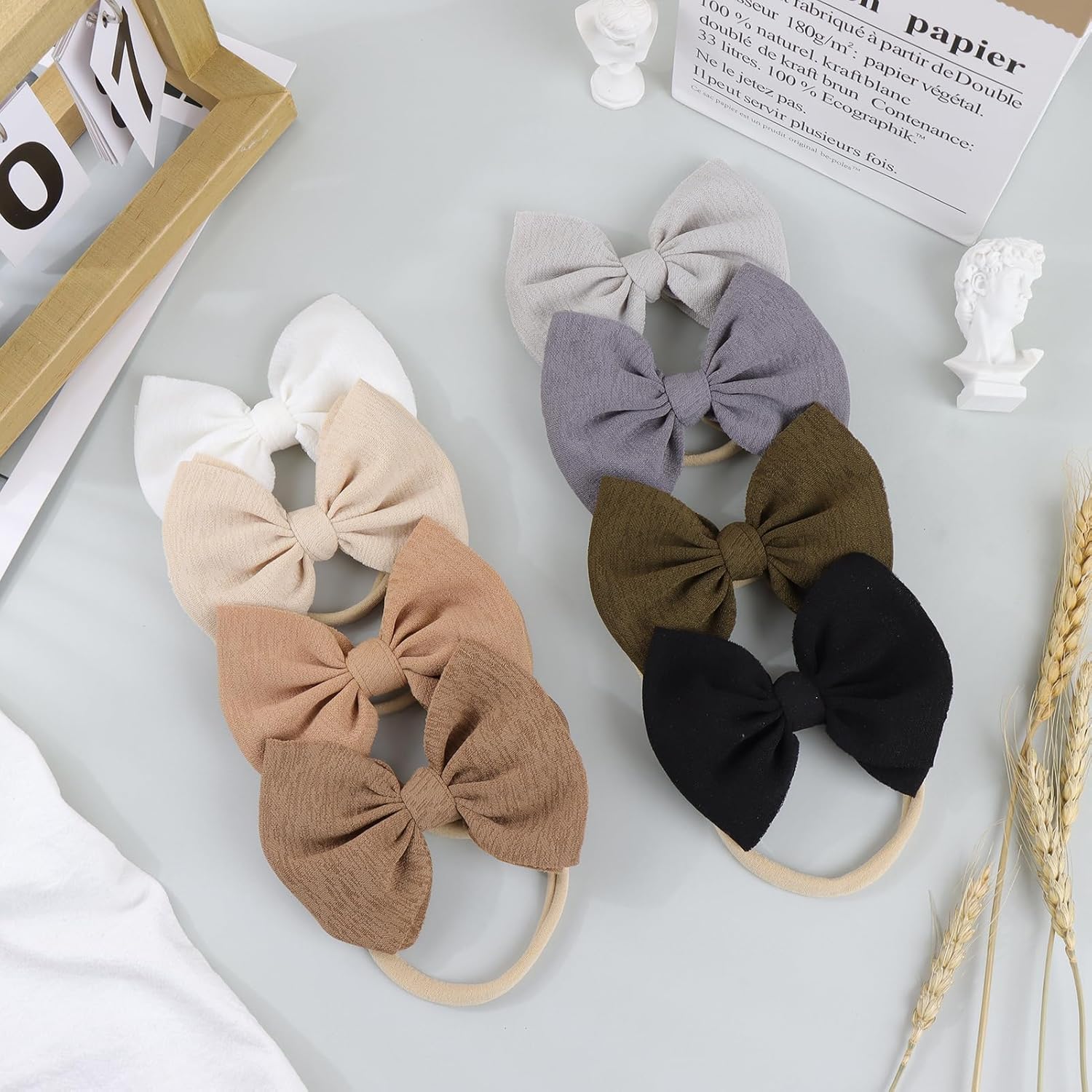 Lanmerry offers 8 PCS handmade tan bow hairbands for baby girls. Made from stretchy and breathable nylon, these comfortable headbands are perfect for newborns and toddlers. Stylish, secure, and ideal for all occasions.