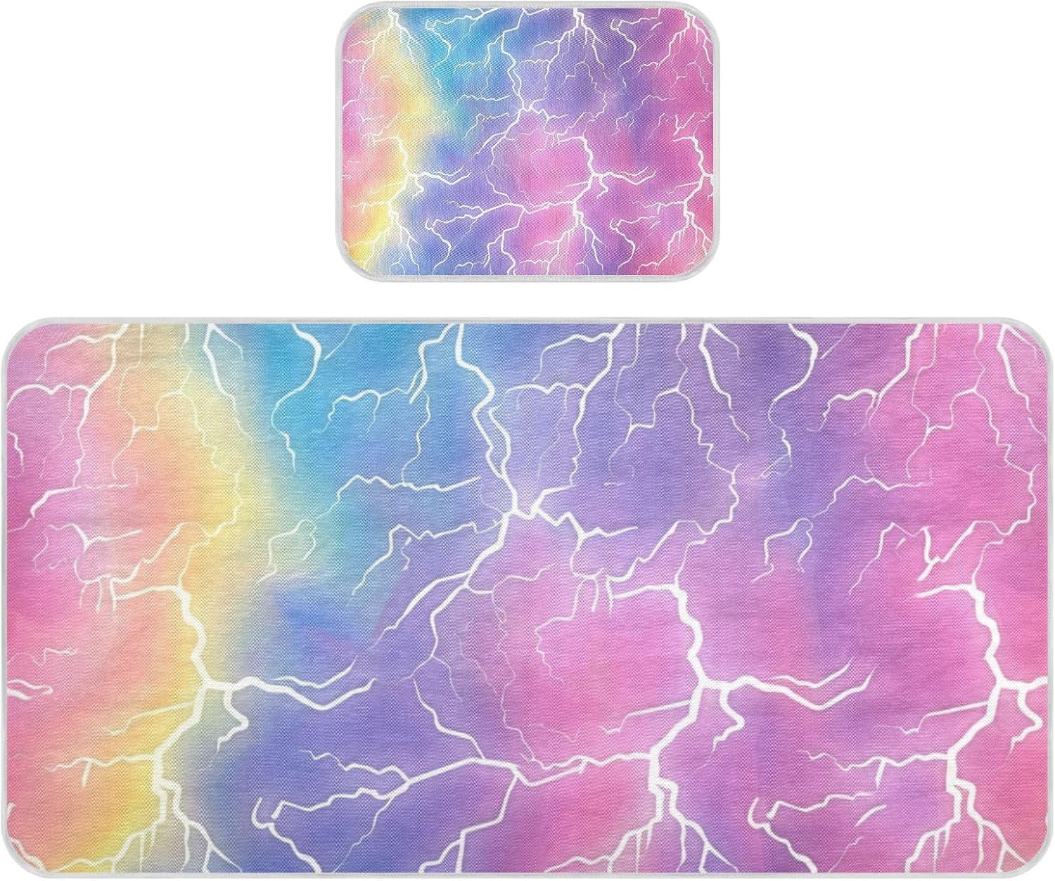 This eye-catching Rainbow Lightning Bolts Baby Mattress Cover is perfect for keeping your little one cool and comfortable all night long. It features advanced cooling technology that helps regulate temperature, ensuring a restful sleep even on the hottest summer nights. The ultra-soft fabric is gentle on baby's delicate skin, while the waterproof design keeps the mattress underneath safe from spills and accidents.