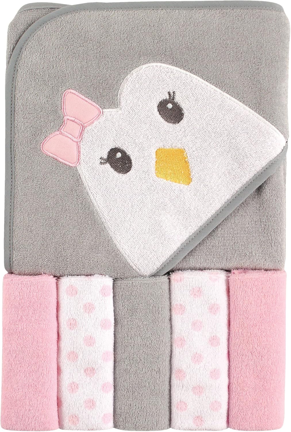 This adorable baby hooded towel with five matching washcloths is a must-have for any parent. Designed with a soft 75% cotton and 25% polyester blend, itâs gentle on your babyâs delicate skin and built to last through repeated use. The set includes one large hooded towel for wrapping your little one and five smaller washcloths for spot cleaning, bath sessions, or changing routines. Perfect for everyday use and travel, this baby care essential combines comfort, functionality, and style in one convenient package.