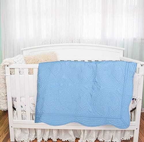 This baby quilt is the perfect blend of style and functionality. Designed with a personalized monogram and elegant, embossed scalloped trim, it adds a touch of sophistication to any nursery. Made from a soft, premium fabric, it ensures your little one stays cozy and comfortable during sleep or playtime. Its versatile size fits most cribs and toddler beds, making it an ideal gift for swaddling, tummy time, or use as a decorative throw blanket. Whether it's a chilled winter night or a summer stroller trip, this lightweight quilt is suitable for year-round use. The high-quality stitching guarantees durability and easy care, so you can rely on it for long-term use without worrying about wear and tear. With hypoallergenic material, it's safe for sensitive skin and delivers a gentle, soothing feel for your baby. Personalize it with their name or initials to create a customized and heartfelt addition to their nursery decor. This custom name baby blanket is more than just a piece of beddingâit's a meaningful keepsake that parents will treasure.Personalized Baby Quilt with Embossed Scalloped Edges