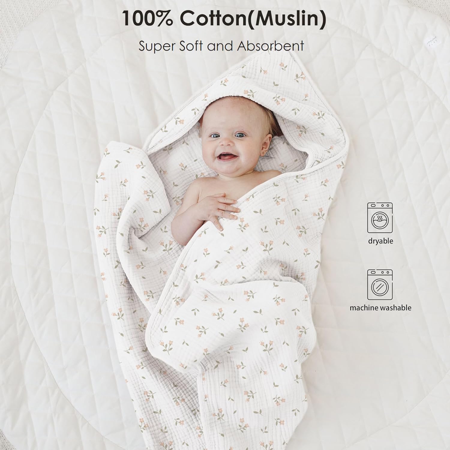 These MairMore baby towels are designed with your newborn in mind, offering a perfect blend of softness, absorbency, and practicality. Made from 4 layers of premium 100% cotton, they are incredibly gentle on your baby's delicate skin and highly absorbent, keeping your little one dry and comfy after every bath or swim. The hooded design adds an extra layer of warmth and protection, especially for sensitive ears and head, creating a soothing and safe environment during bath time.